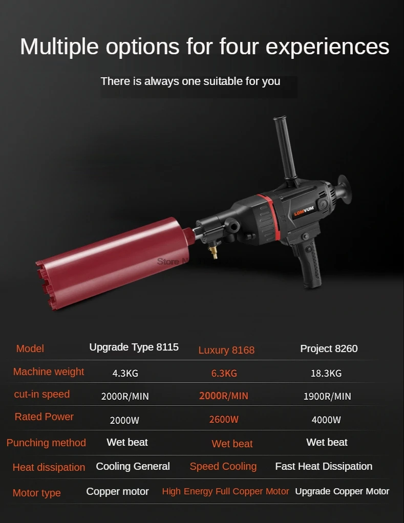 Ручная Электрическая Дрель Стразы 220 в 2000 Вт 180 мм для сверлильного станка с алмазным сердечником, электрическая