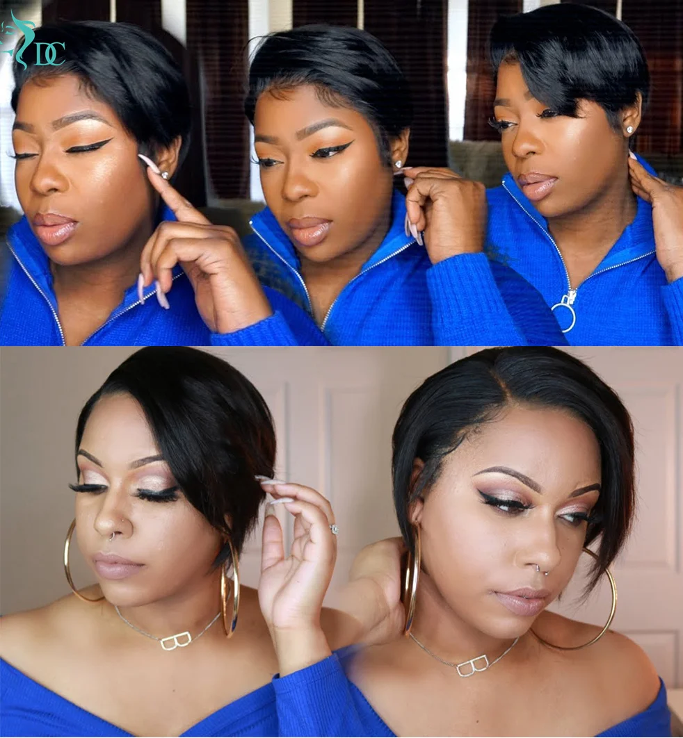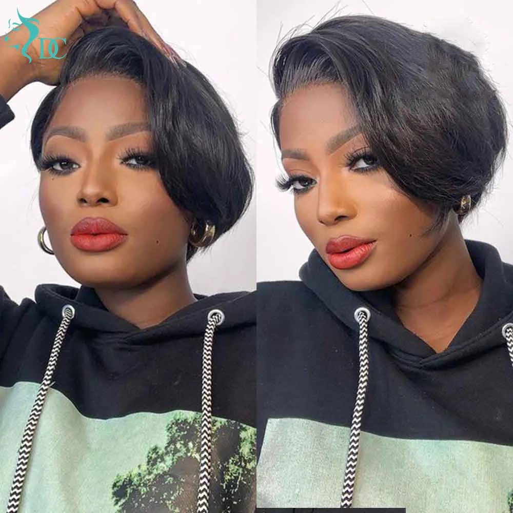 Парик Пикси стрижка Короткий прямой парик Боб 13x1 парик из натурал...
