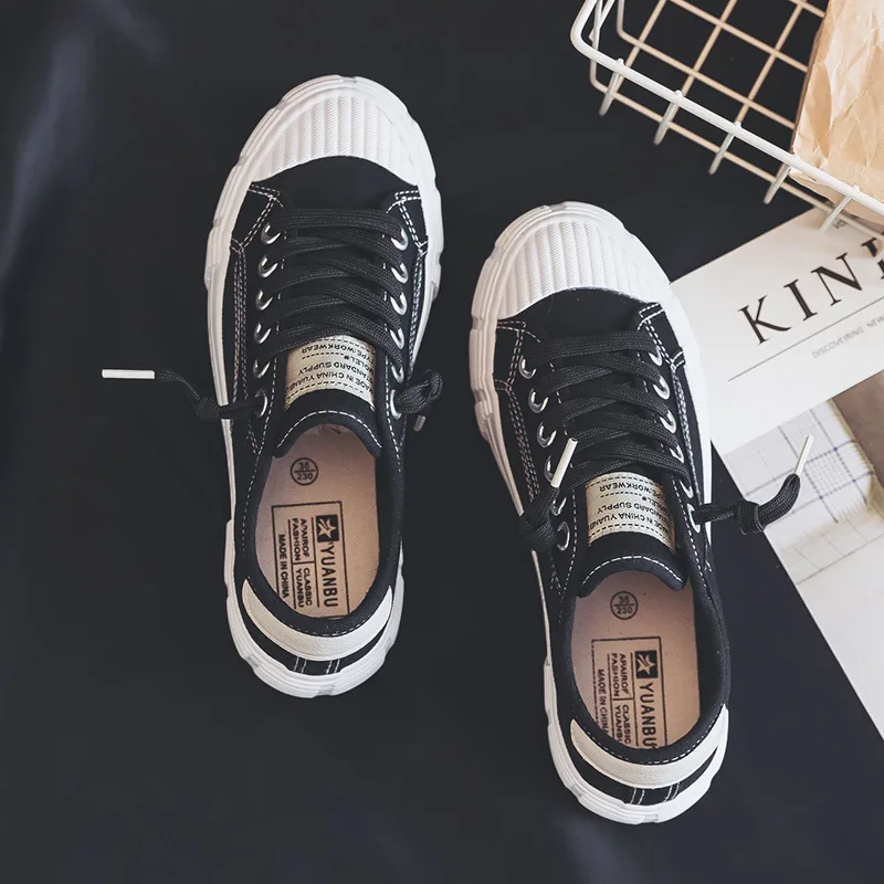 Женская парусиновая обувь; Однотонная летняя Новинка 2021 года; Стильные женские кроссовки; Обувь для девочек; Цвет черный, белый; Кроссовки на шнуровке; Низкие эспадрильи
