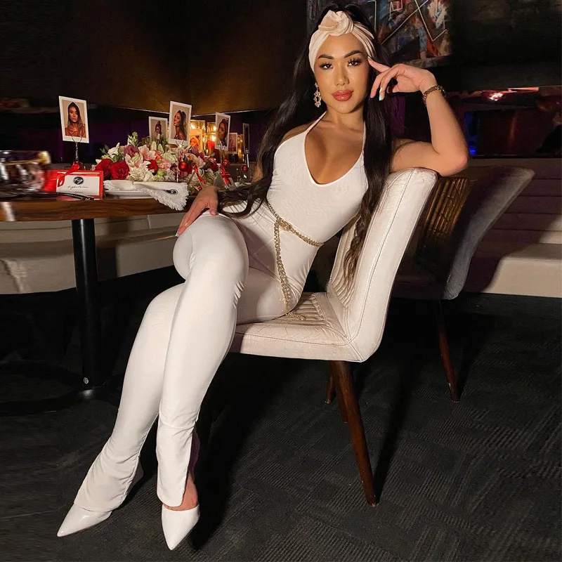 Комбинезон BOOFEENAA Женский, белый, с открытой спиной, с лямкой че...