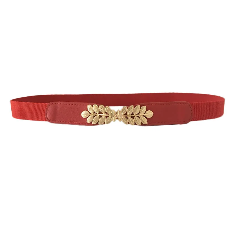 Ремень женский эластичный, тонкий, с пряжкой, пояс в форме листьев