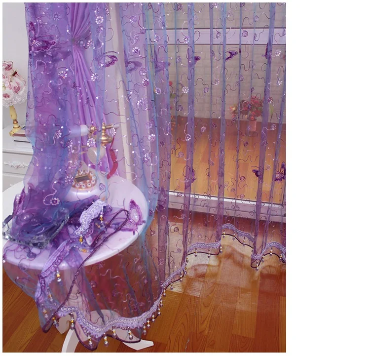 Светлые тюлевые занавески с блестками и вышивкой в виде бабочек для...