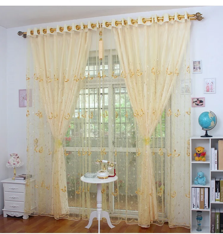 Занавески на окна для гостиной, спальни, с вышивкой бабочек