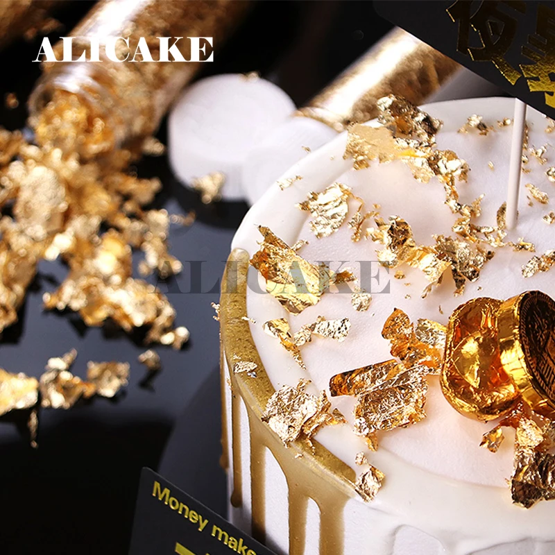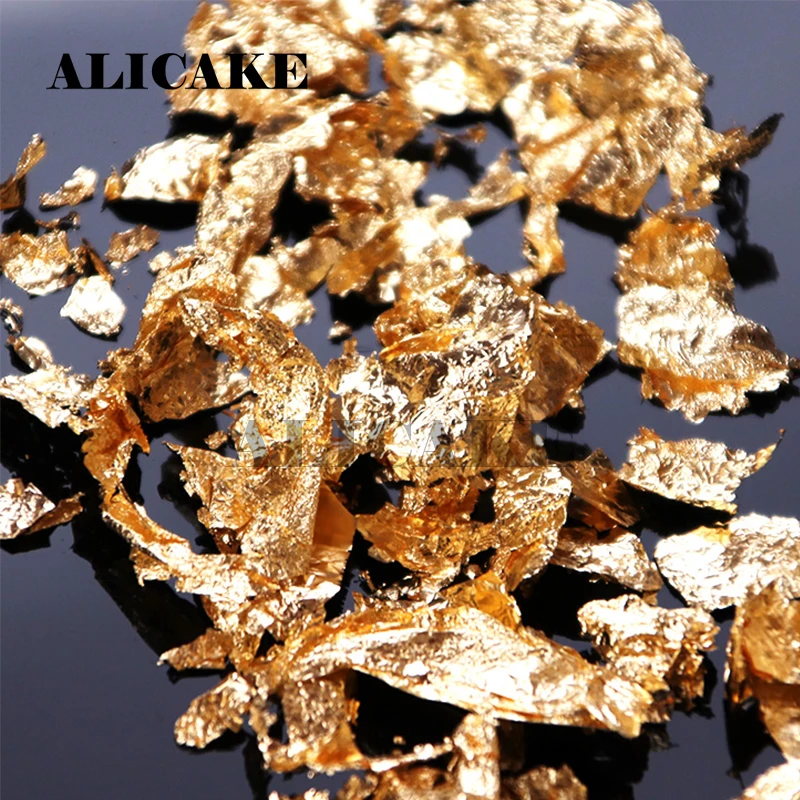 Съедобные хлопья для лист из золотой фольги, 2 г, 24 К золота, для выпечки, украшения тортов, шоколада, выпечки, суши