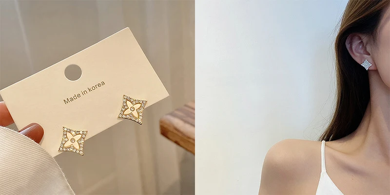Женские жемчужные серьги-клипсы, милые Квадратные серьги в стиле ретро с бабочками и цветами, 2021