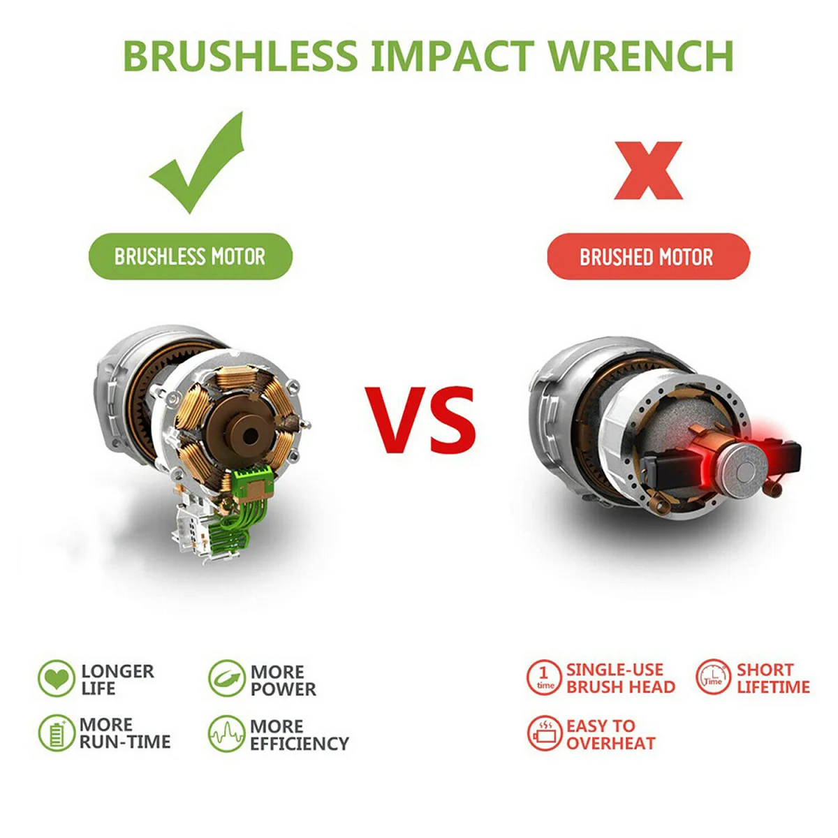 -Бесщеточный двигатель не создает искр при работе, и двигатель не изнашивается.