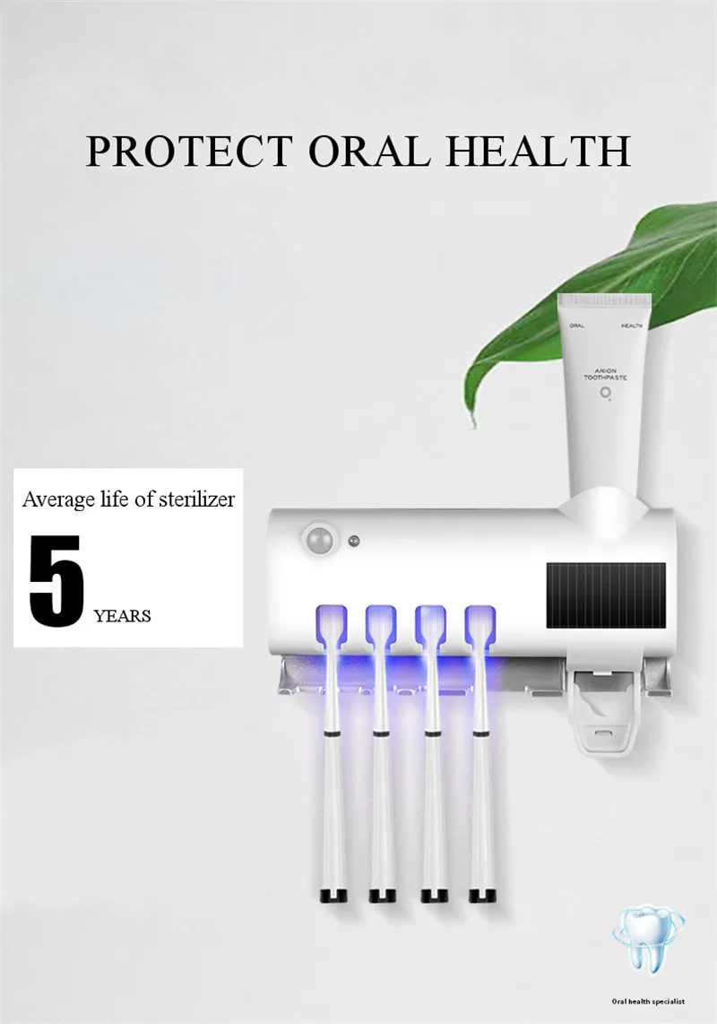 Особенности1. Солнечная зарядка, длительный срок службы, непрерывная Зарядка не требуется, больше душевного спокойствия. USB зарядка в течение 6 часов, максимум может длиться около 3 месяцев2. Двухслойная конструкция стерилизации, верхний слой может быть помещен в зубную щетку, нижний слой помещен в бритву, зубную нить и т. д. может дезинфицировать больше продуктов в то же время, высокая практичность3. Стерилизатор является водонепроницаемым и влагонепроницаемым, не протекает, безопаснее в использовании4. Установка без перфорации, сильная адгезия, не повреждает стену