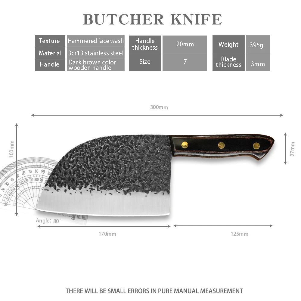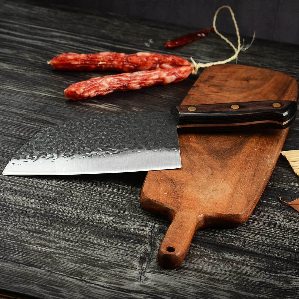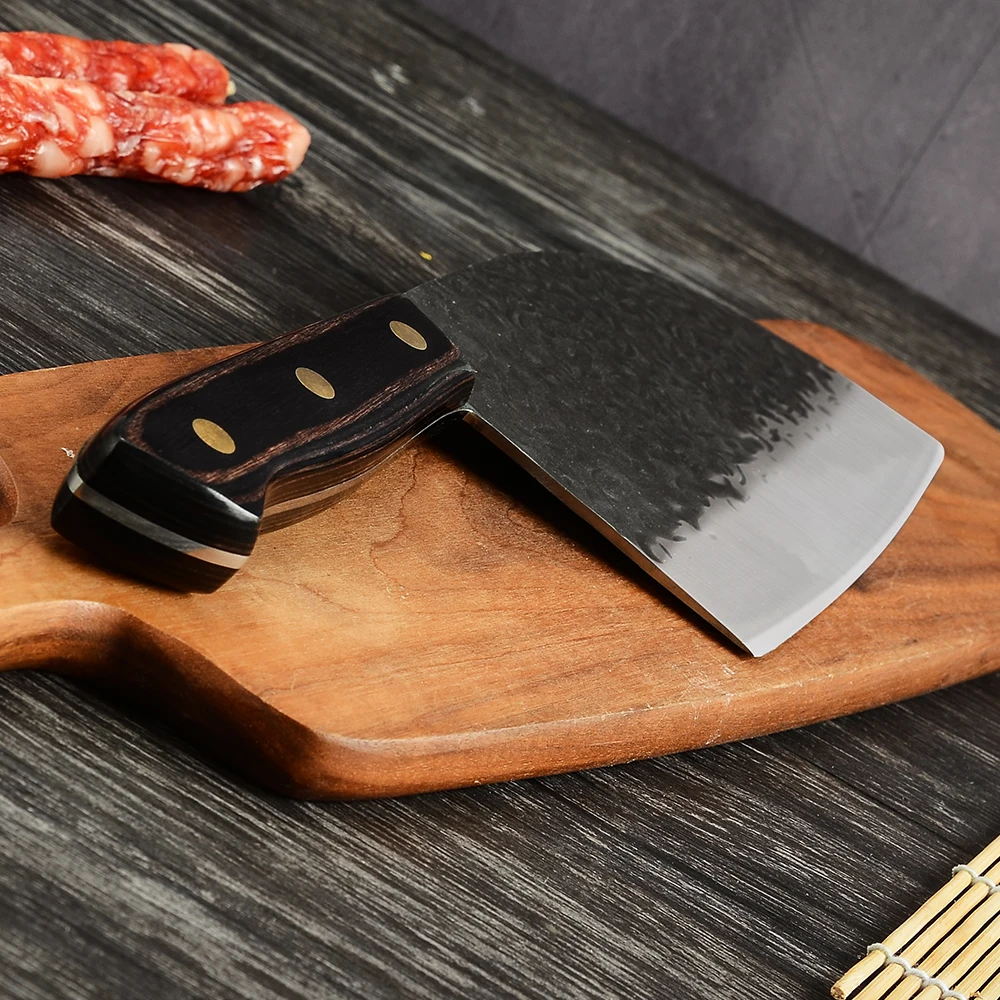 Ру доставка 7 дюймов кухонный нож мясника из нержавеющей стали кованые тесак нож шеф-повара, пластичный монтаж, острые столовые приборы с деревянной ручкой