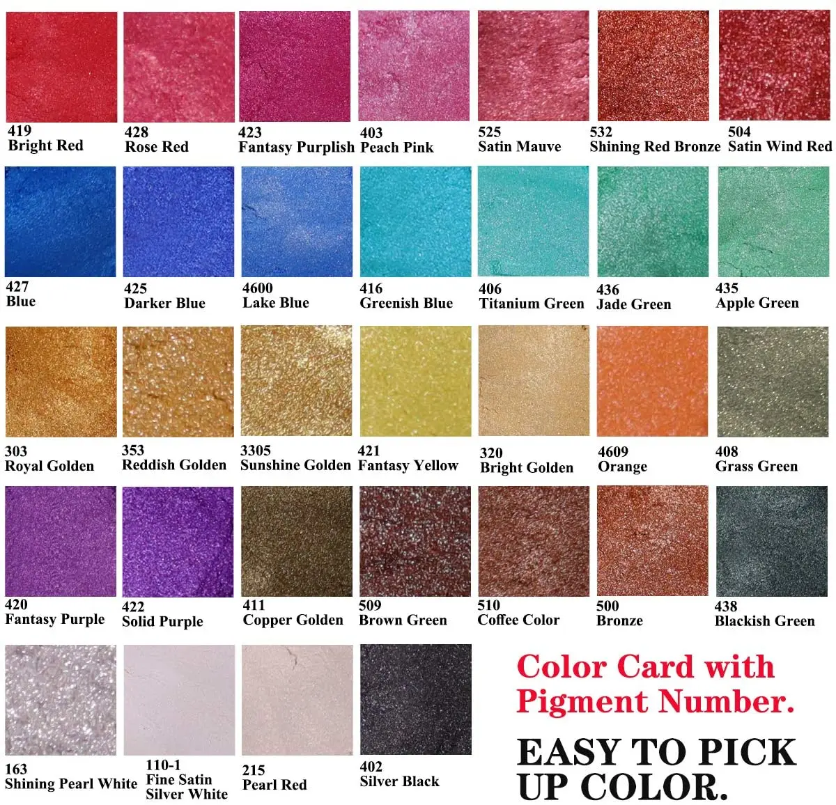 1: Смешайте 2-3% от общего веса лака, чтобы получить полный Непрозрачный результат, или начинайте с 0.1%, чтобы получить полупрозрачный вид! 2: слюдяной порошок сам по себе не горючий, поэтому используется для изготовления свечей нельзя добавлять слишком много, рекомендуется добавить всего 1-2%, а затем равномерно размешать. 3: всегда делайте Бомбочки для ванны с полисорбетом 80, чтобы краситель не испачкался.