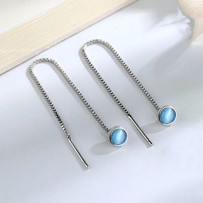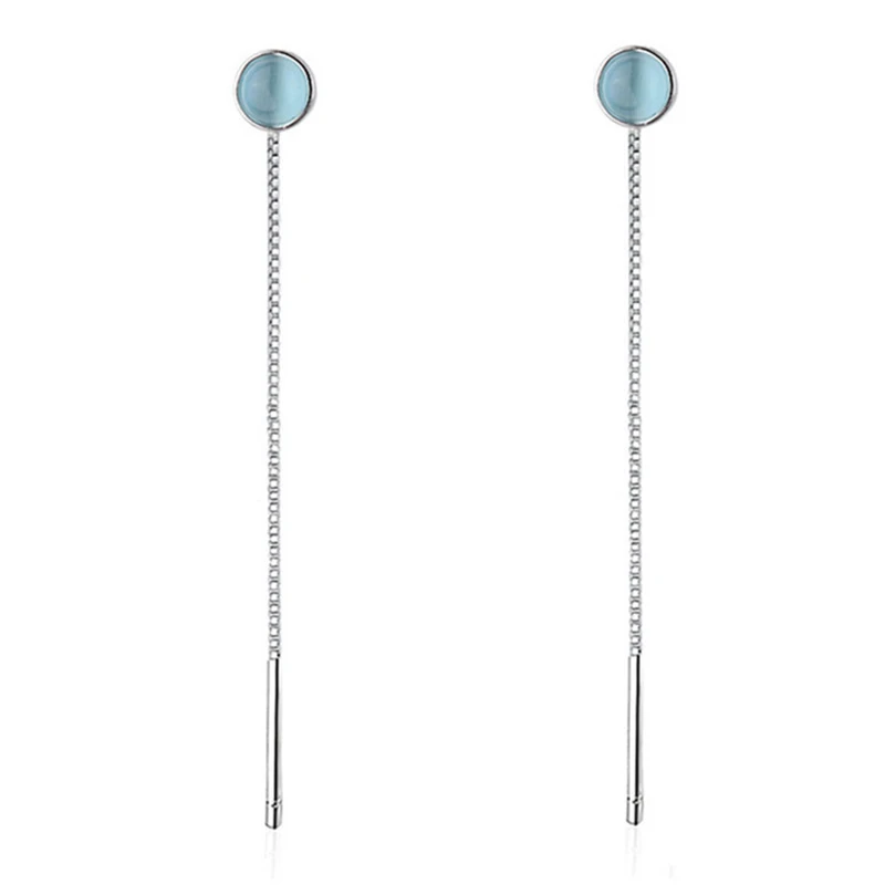 Женские длинные серьги с голубым опалом, посеребренные серьги S925, E3441