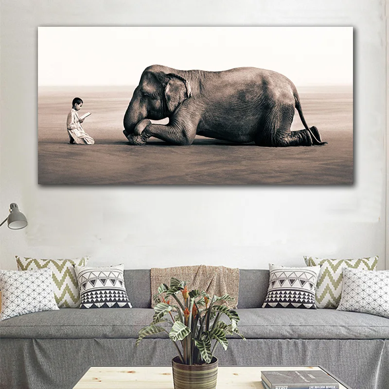 Современные животные Искусство Холст Картина слон и мальчик плакаты и принты настенные картины для комнаты домашний декор