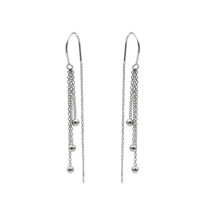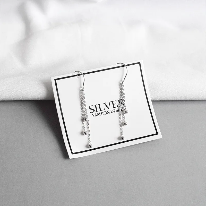 LKO Настоящее серебро 925 пробы, цепочка из бусин, длинные серьги с кисточками, простые стильные украшения для женщин, аксессуары для свадебной вечеринки