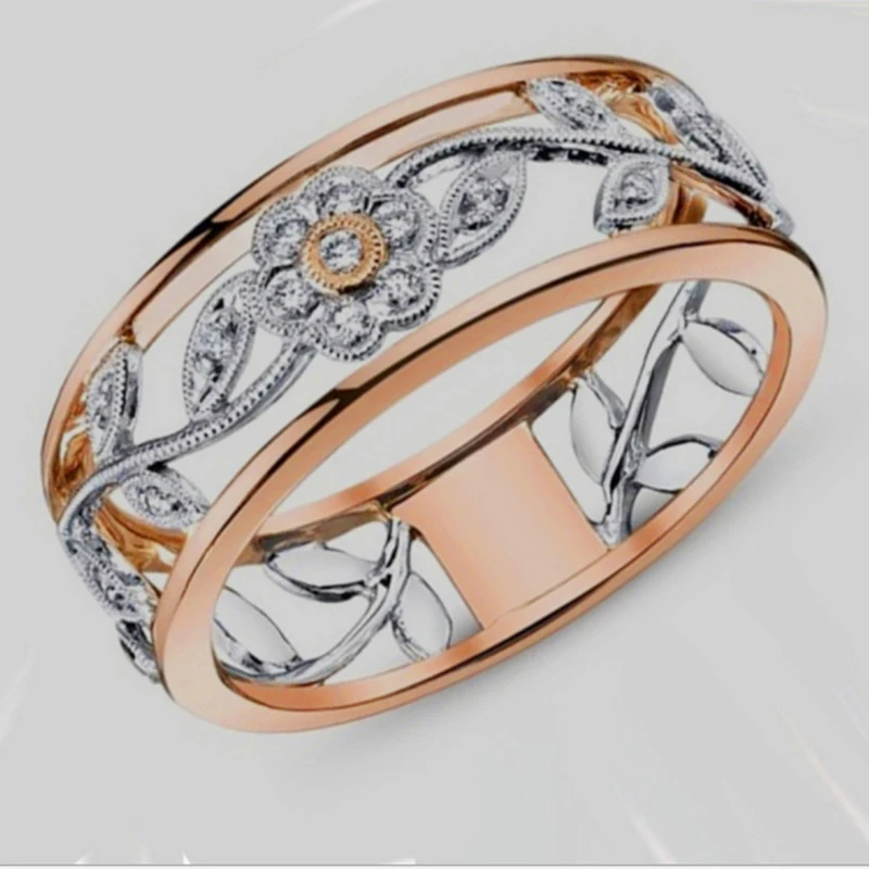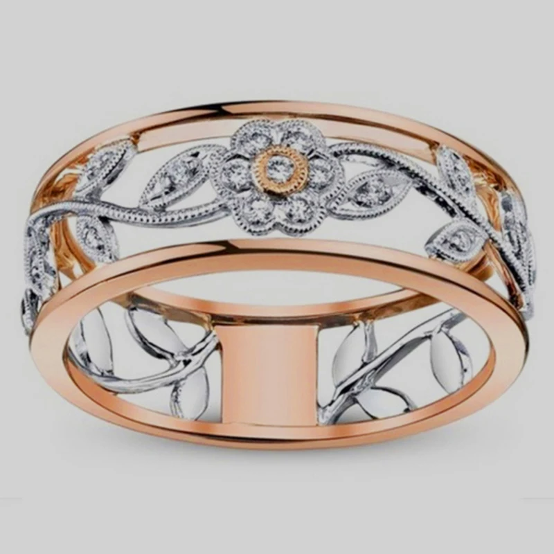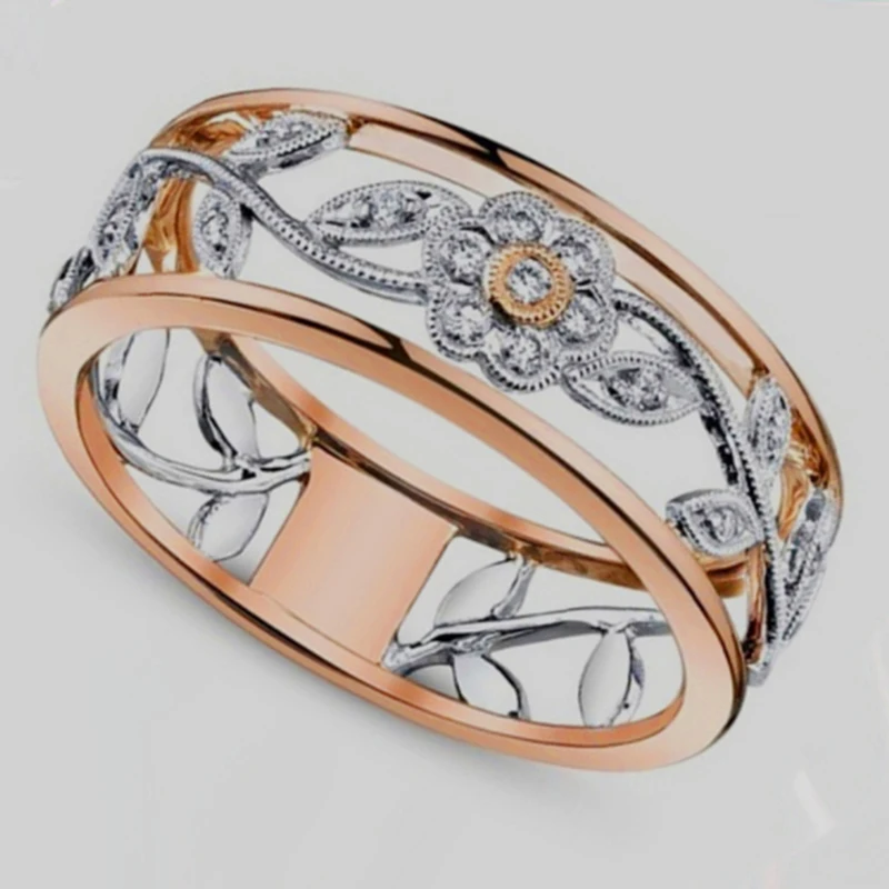 Кольцо унисекс, розовое золото, обручальное кольцо с полым цветком, стразы