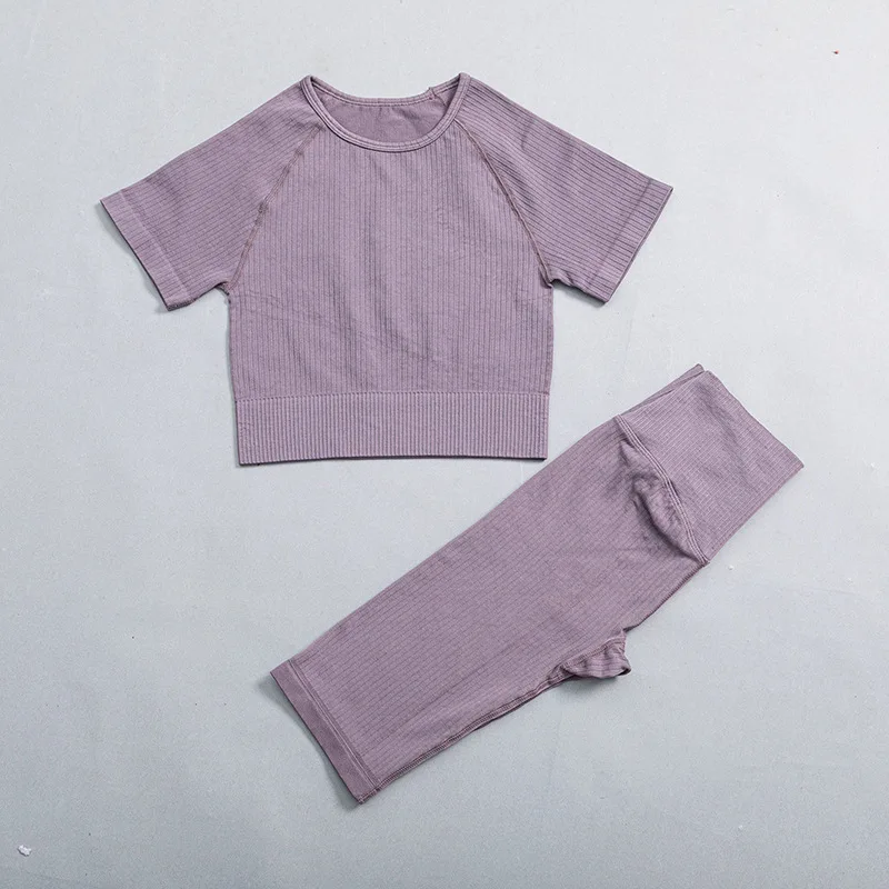Женский спортивный костюм для йоги, комплект из двух предметов, бесшовный укороченный топ с короткими рукавами и шорты с высокой талией, спортивный костюм для фитнеса и тренировок