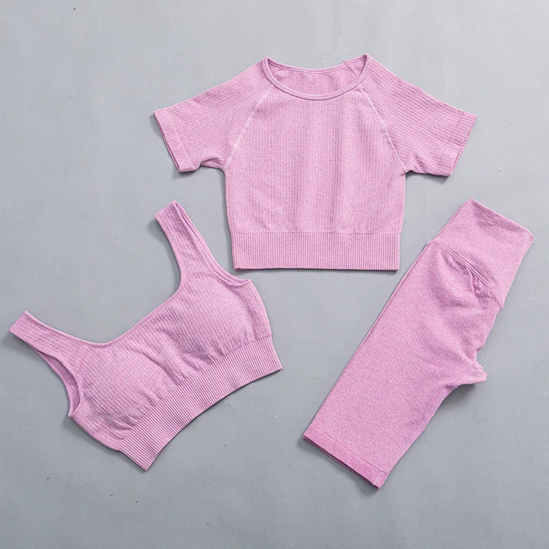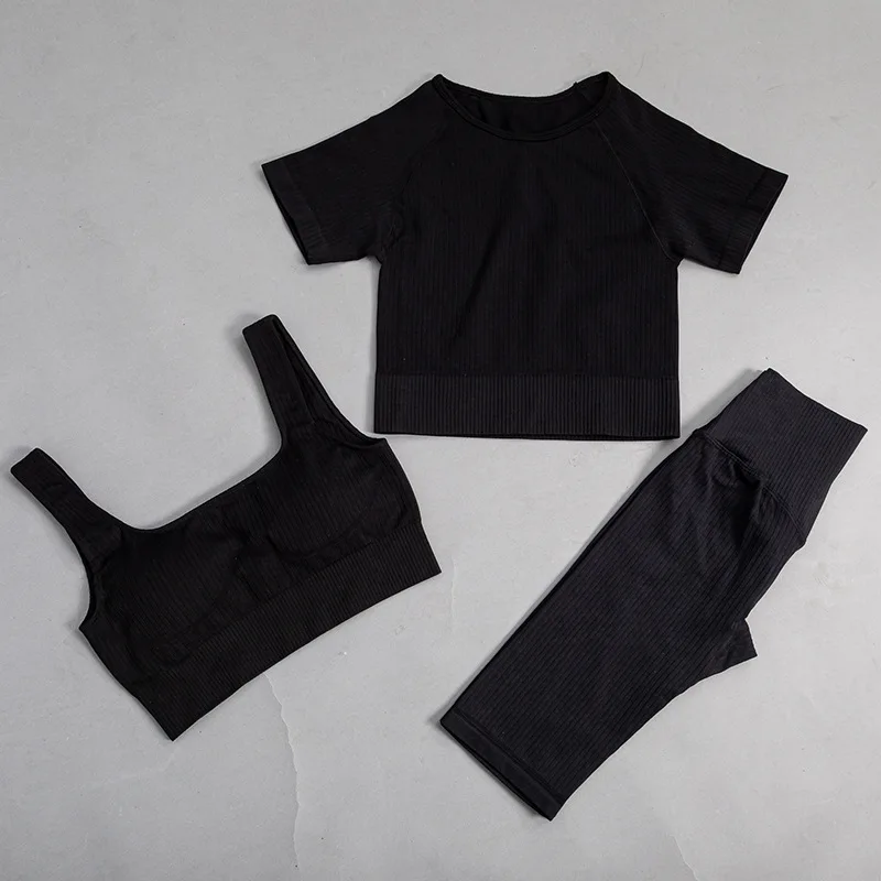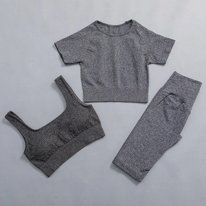 Женские Бесшовные комплекты для йоги, 3 шт., женская одежда для фит...