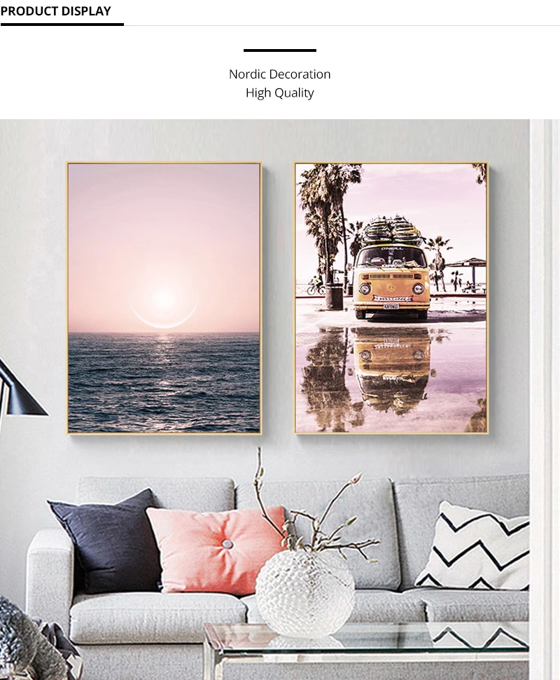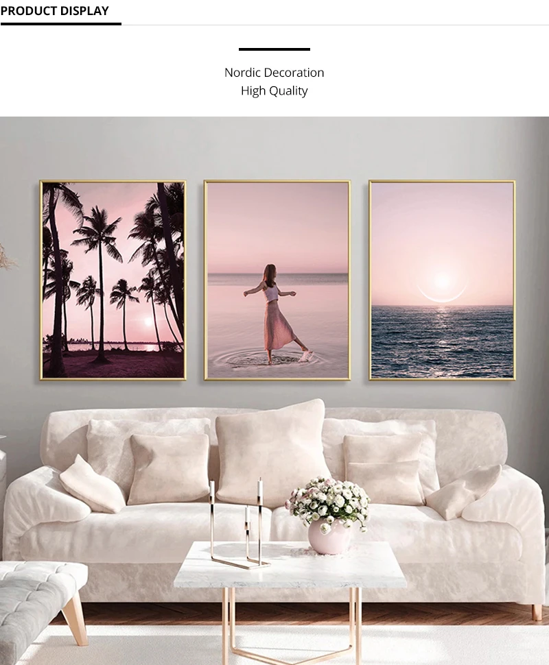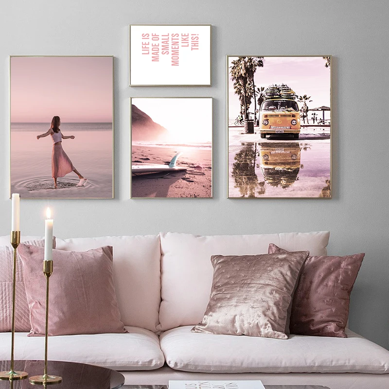Настенные постеры в скандинавском стиле, розовые морские пляжные ра...