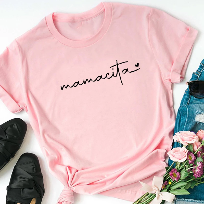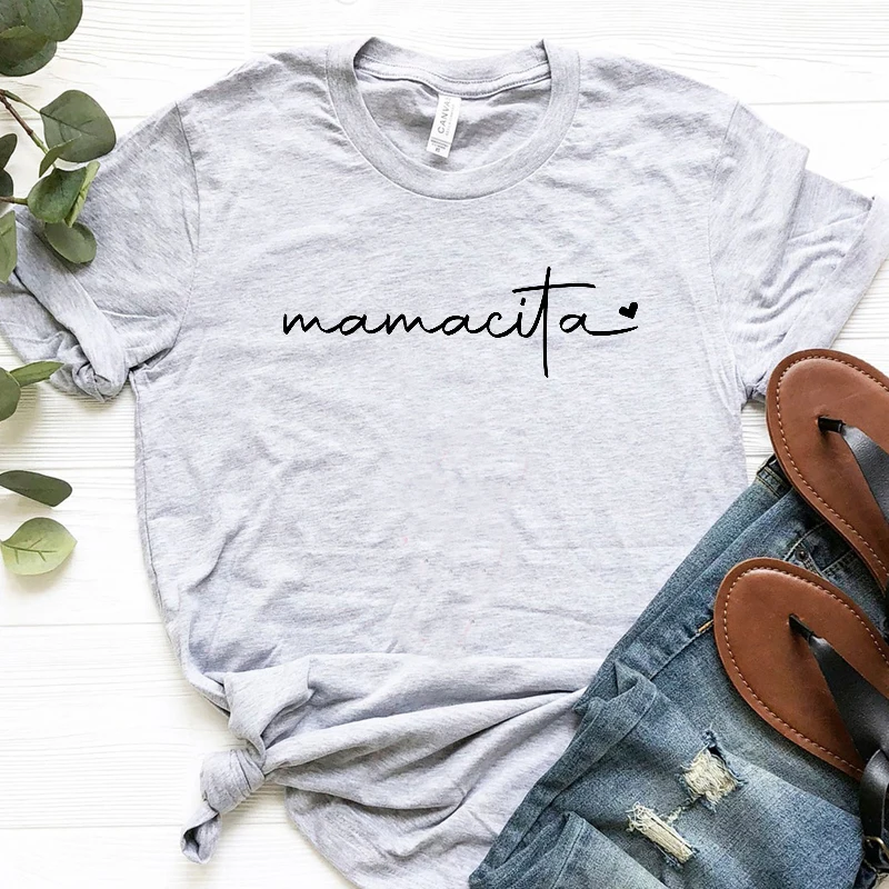 Женская хлопчатобумажная рубашка с изображением сердца Mamacita, Повседневная Свободная футболка белого и черного цвета на день матери, подарок на день матери, Прямая поставка