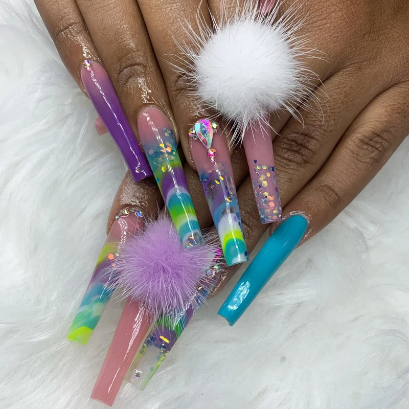 5 шт./упак. Милая Пышная юбка-баллон из плюша 3D нейл-арта помпонами Магнитный гвоздь художественный амулет Съемный ногтей поставка Популярные POM ногтей B9346