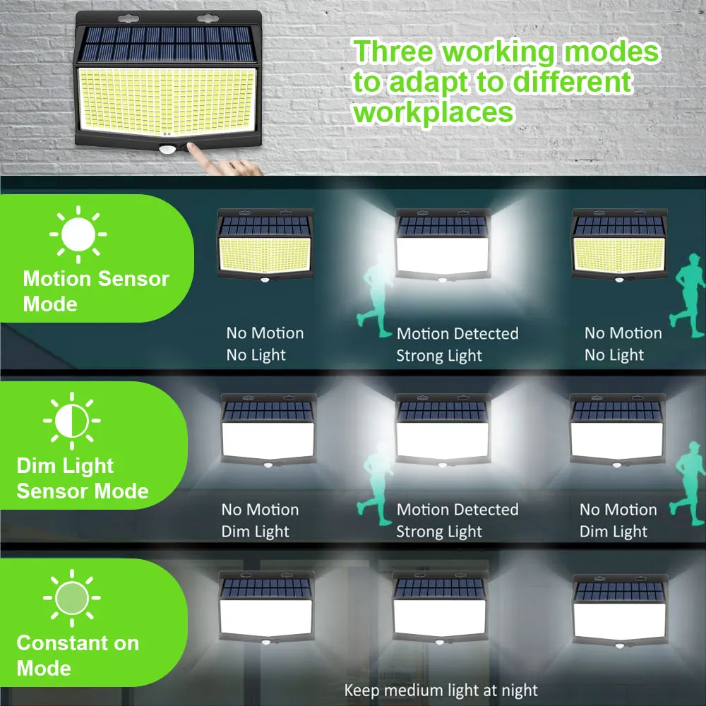 Wide Angle 3 Optional Modes Waterproof Solar Motion Sensor Light