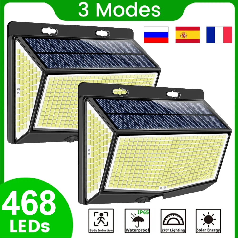 Уличный светодиодный светильник на солнечной батарее, 3 режима, 468, светильник датчиком движения