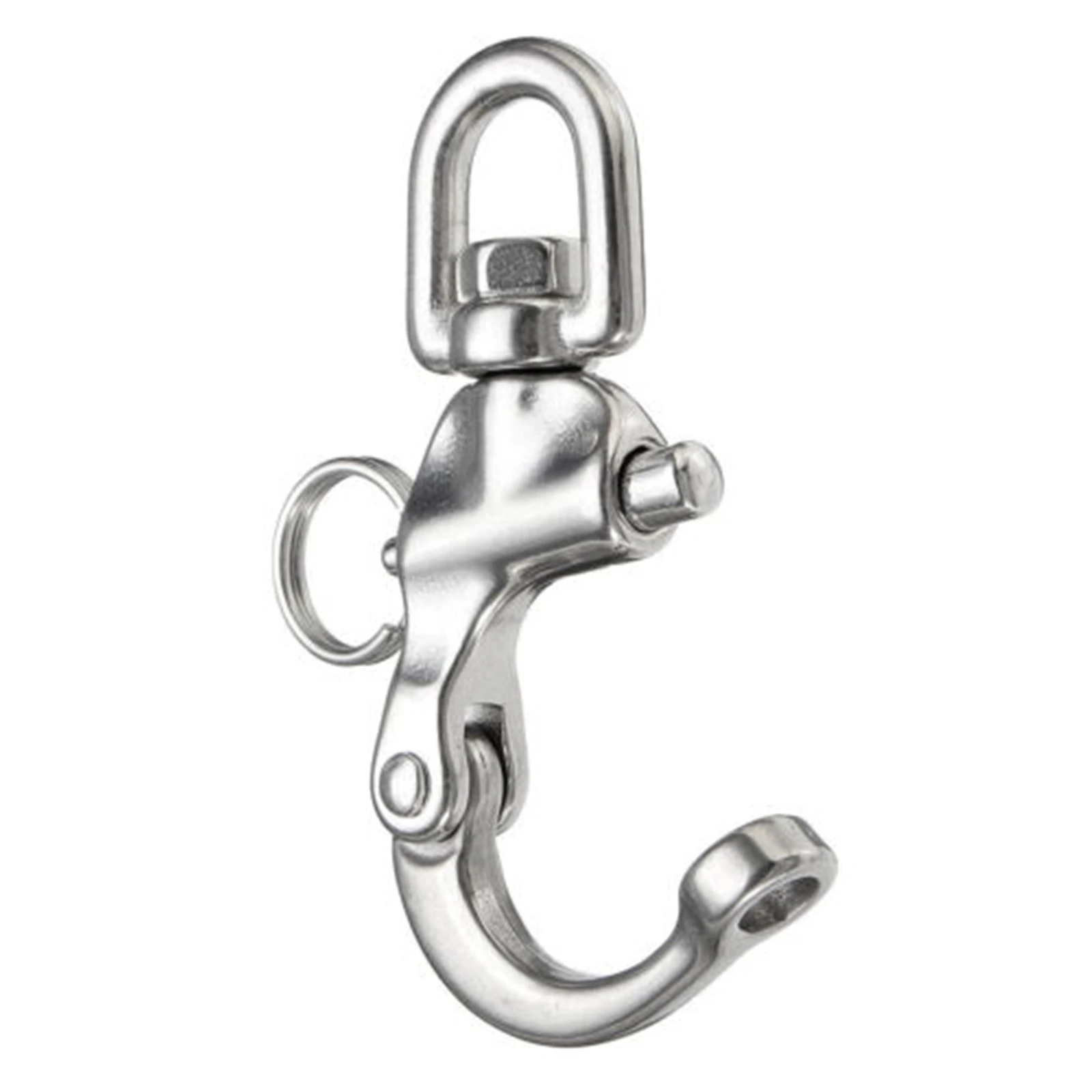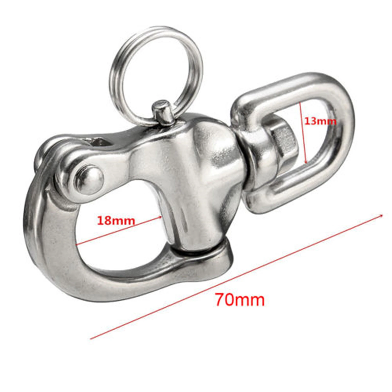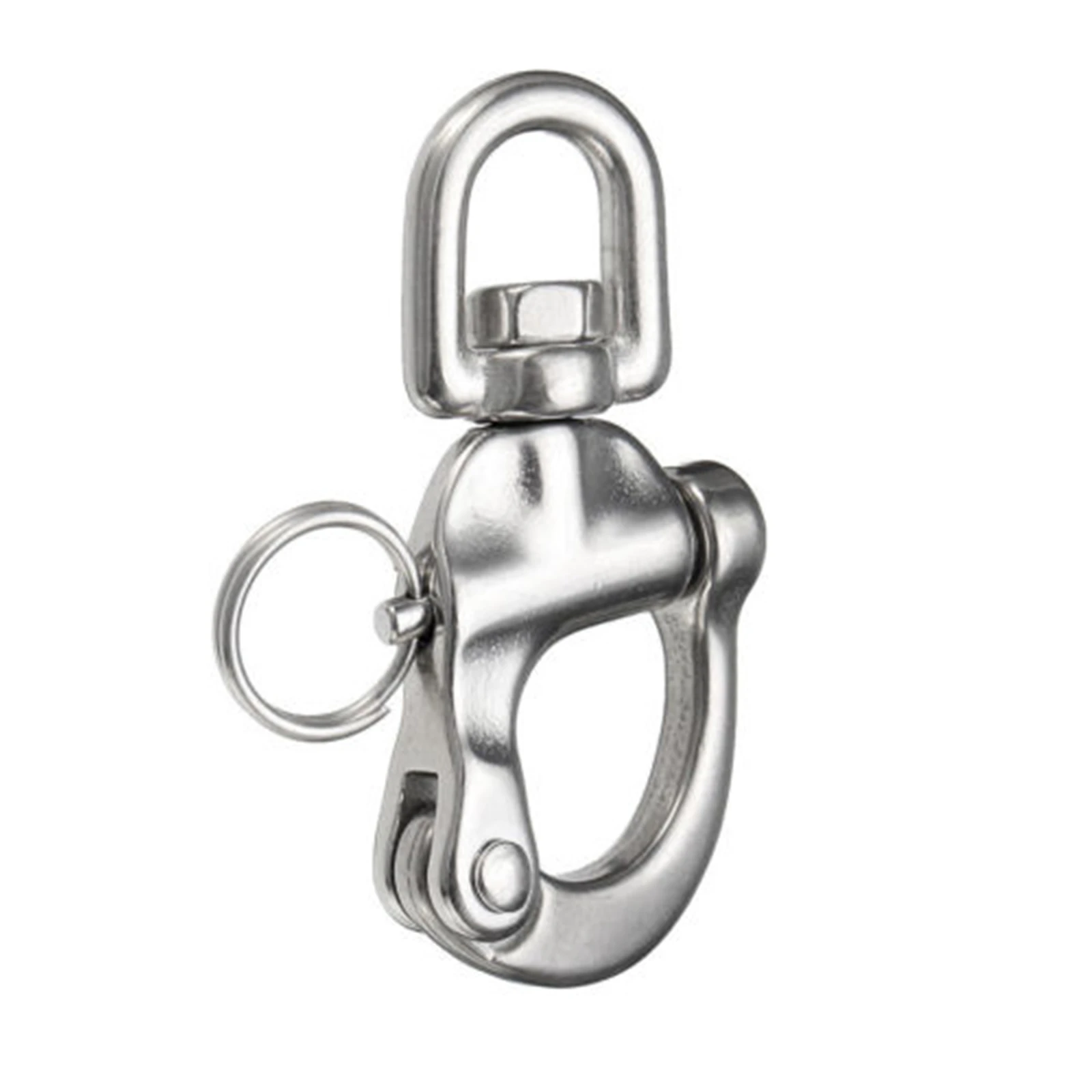 -Износостойкий и устойчивый к коррозииКарабин изготовлен из высококачественной нержавеющей стали 316, обладает высокой износостойкостью и коррозионной стойкостью, прочен и устойчив к ржавчине.-ПрименениеЗащелкивающаяся скоба подходит для большого разнообразия применений, таких как морской и архитектурный, идеально подходит для яхты, лодки, парусного спорта, здания, на открытом воздухе и так далее.-БыстросъемныйСкоба с защелкой оснащена быстросъемным штифтом, что позволяет снять защелку даже при натяжении.-Простота в эксплуатацииПоворотный карабин оснащен сверхпрочной и высокопрочной конструкцией с небольшим стальным кольцом для хорошей работы.-БезопасныйРазъемное кольцо на штифте плунжера сварено точечно для безопасности, позволяет избежать острых краев и высокой температуры коррозии поверхности.