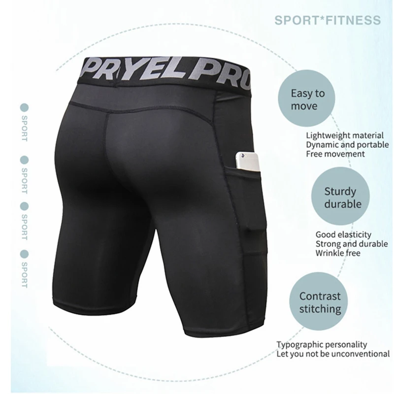 Мужские компрессионные быстросохнущие короткие леггинсы с карманами...