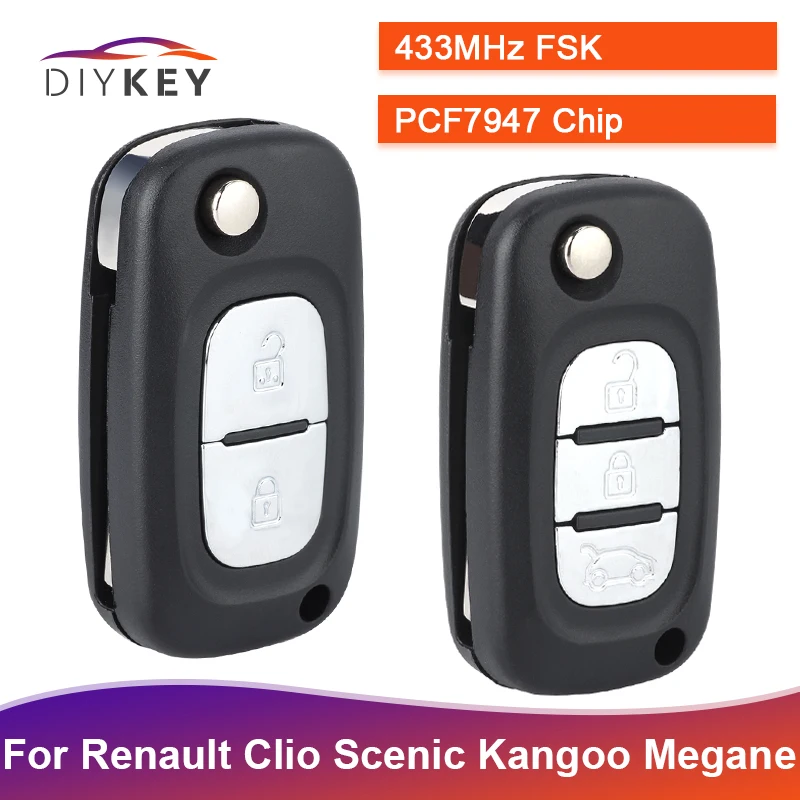 Ключ автомобильный с дистанционным управлением и 2 3 кнопками для Renault Clio Scenic Kangoo Megane 433 МГц с чипом PCF7947