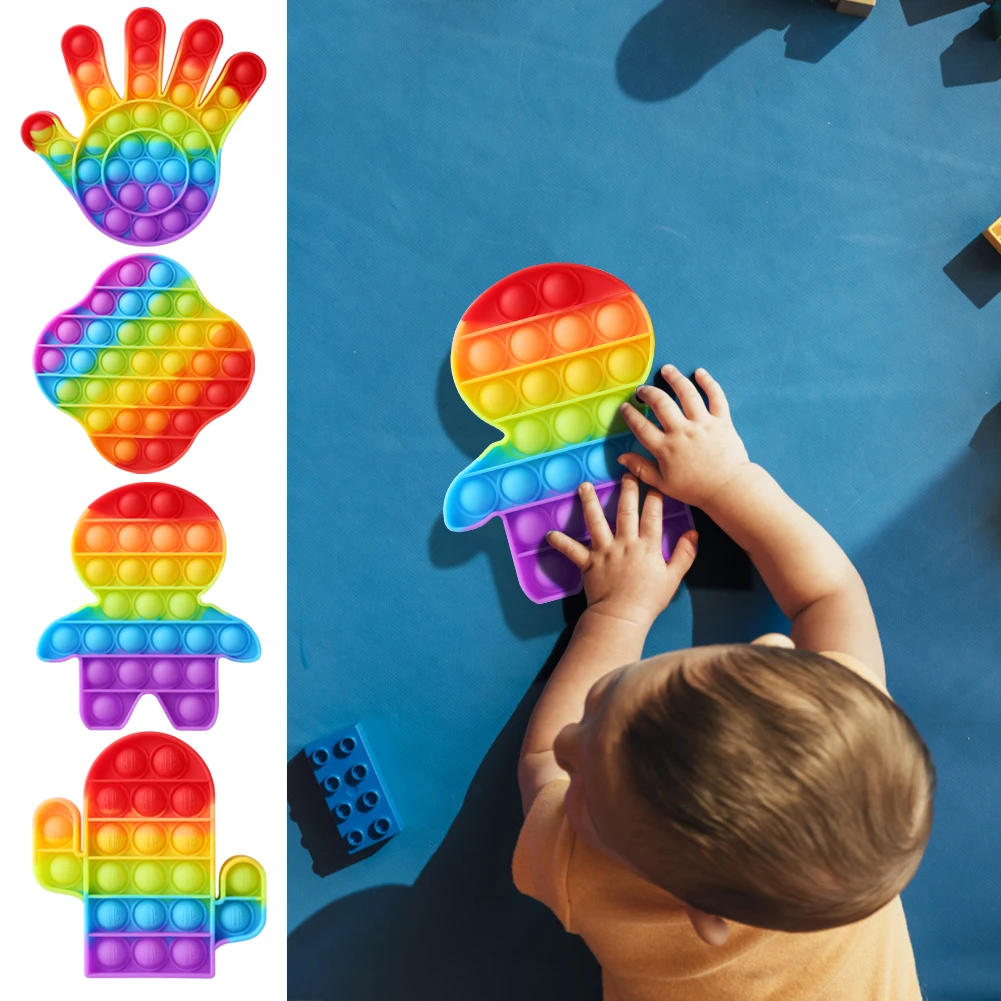 Силиконовая Радужная сенсорная игрушка с нажимом-пузырьком, антистресс, расслабляющая концентрация, развивающие Непоседа игрушки для детей с синдромом аутизма, снятие стресса, специальные потребности, интерактивная игра для взрослых детей