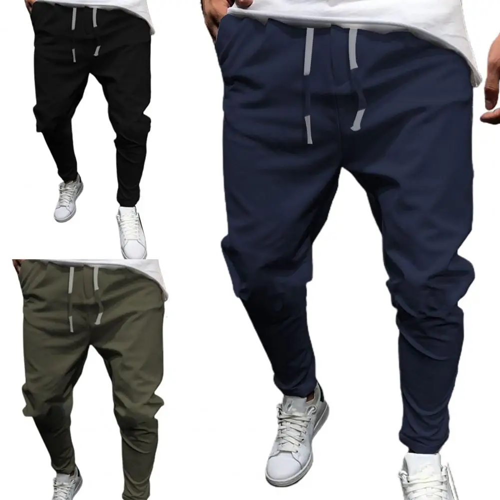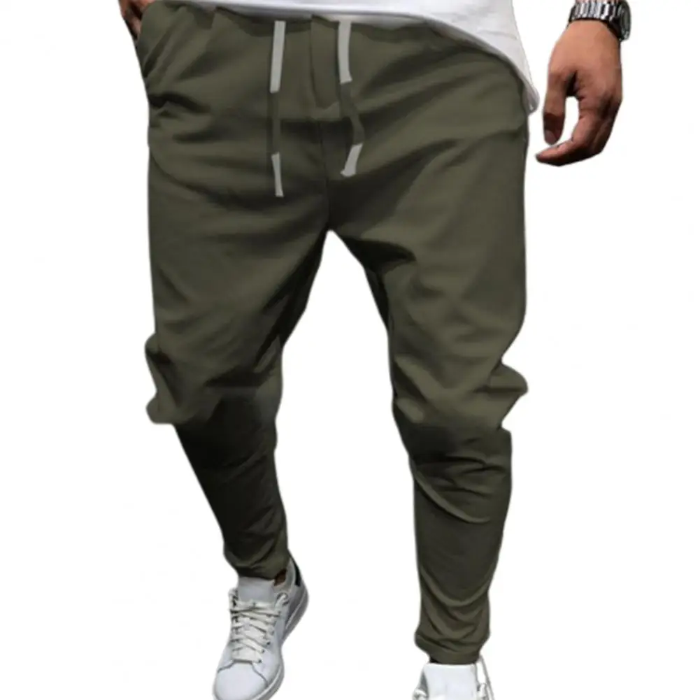 Брюки мужские эластичные на шнуровке, дышащие однотонные штаны из хлопка и льна, повседневная одежда