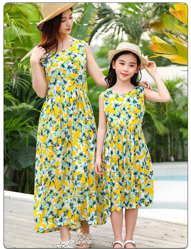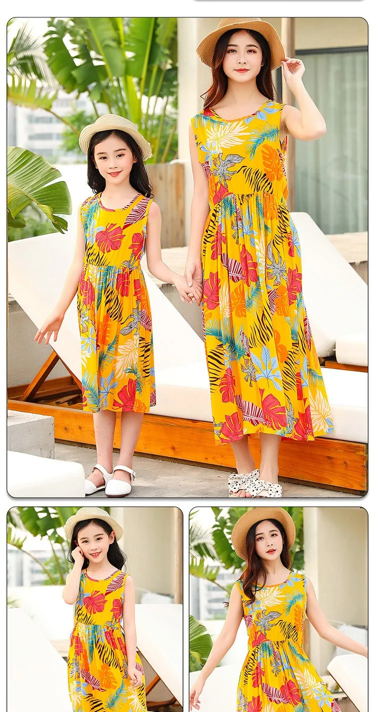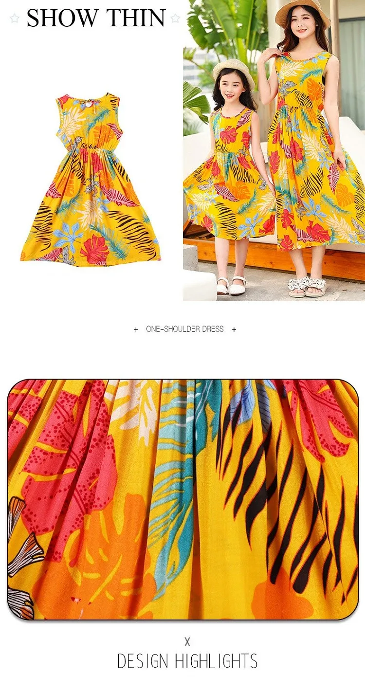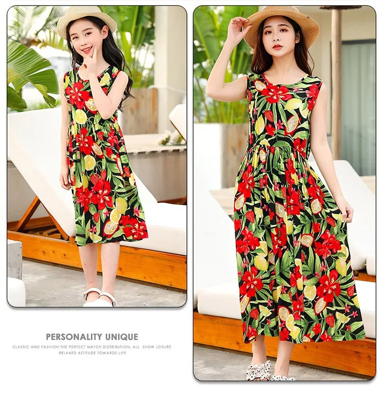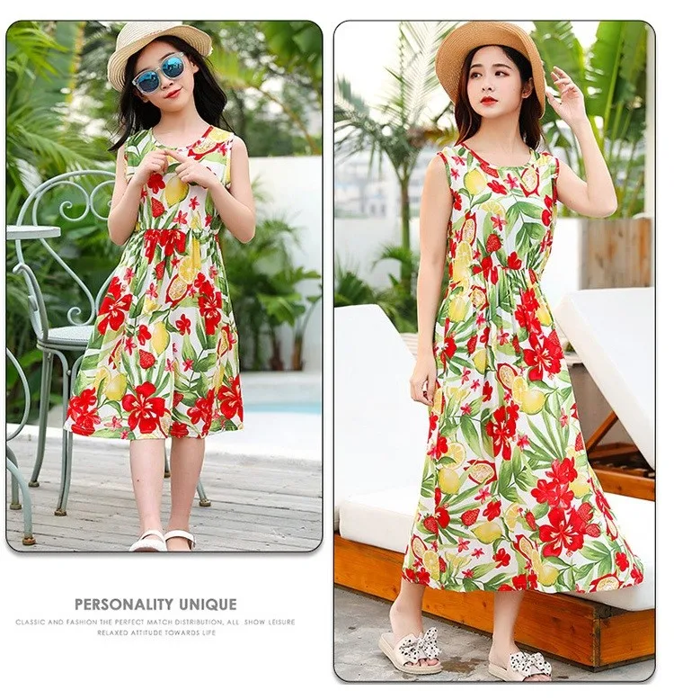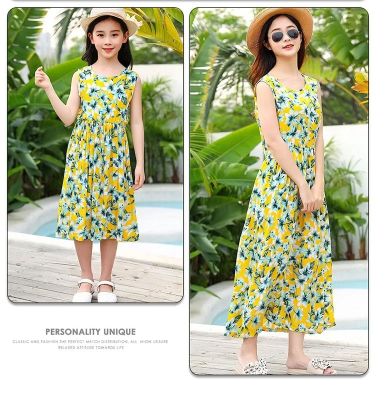 2022 летнее платье для девочек, пляжный сарафан для мамы и дочки, платье для подростков, длинные платья для девочек, одежда для детей