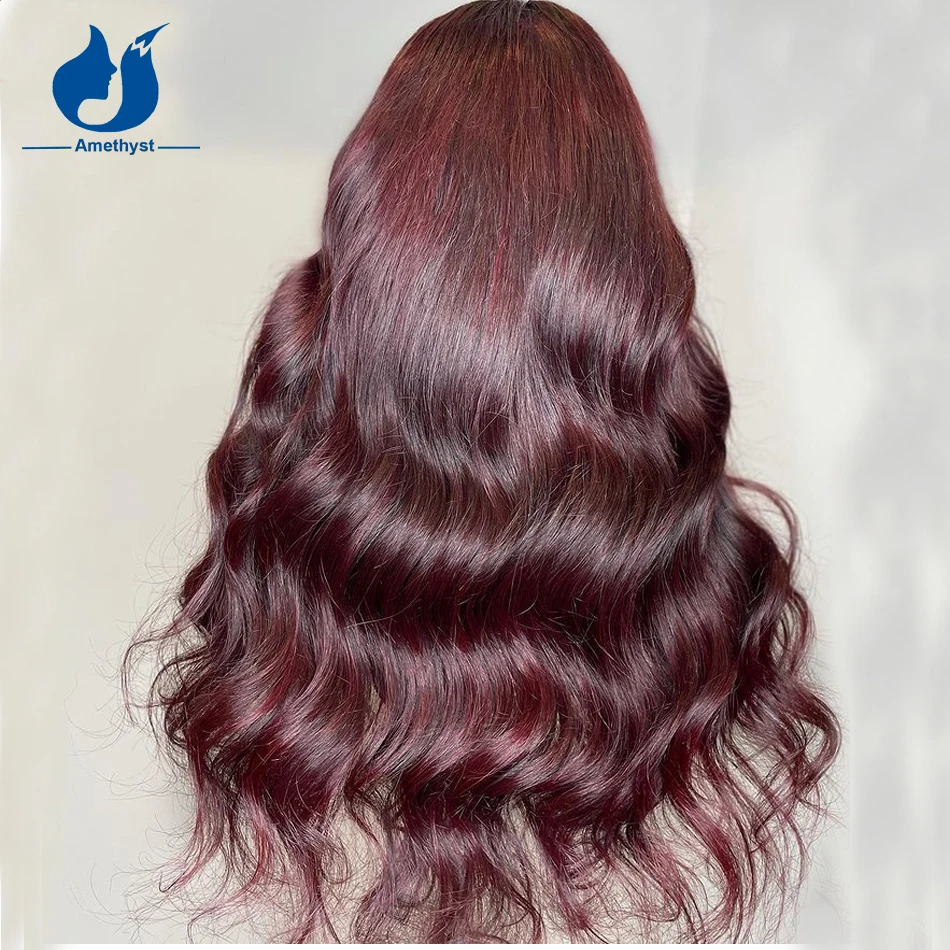 Парики из человеческих волос с аметистом 99J для черных женщин, бразильские волосы без повреждения кутикулы, полноразмерные парики машинной работы с красной волной, бордового цвета