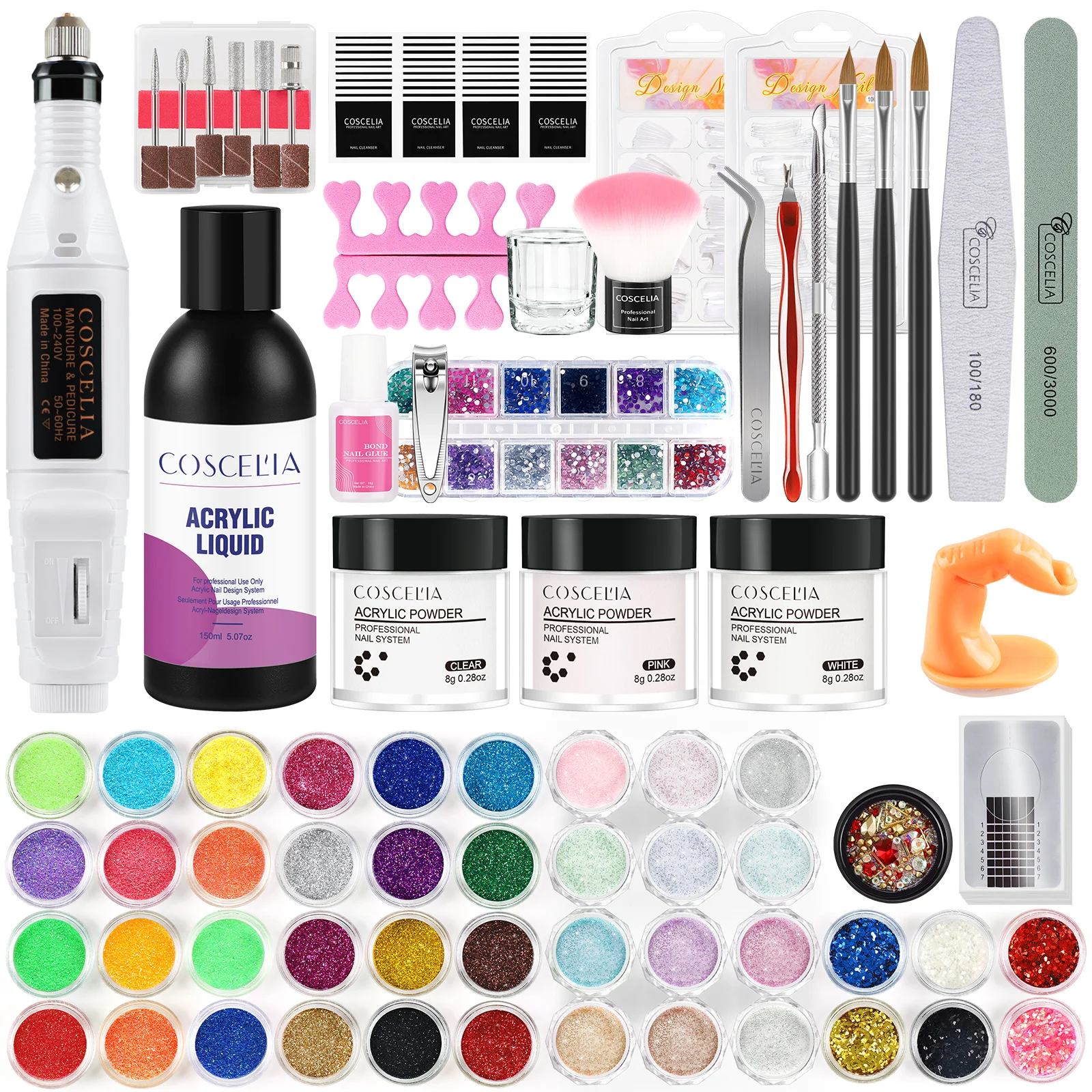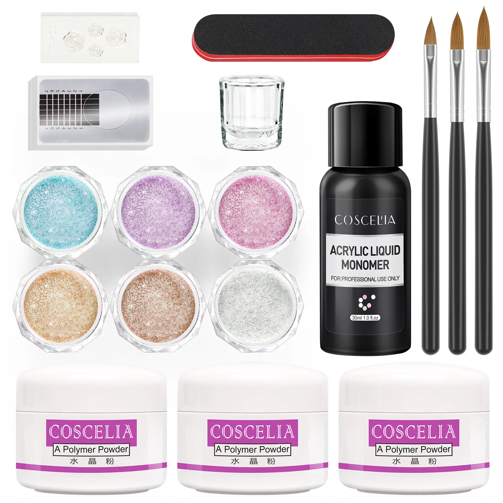 Набор для акриловой пудры с блестками и кристаллами для наращивания ногтей, набор для жидкого маникюра, дизайнерские декоративные инструменты для ногтей