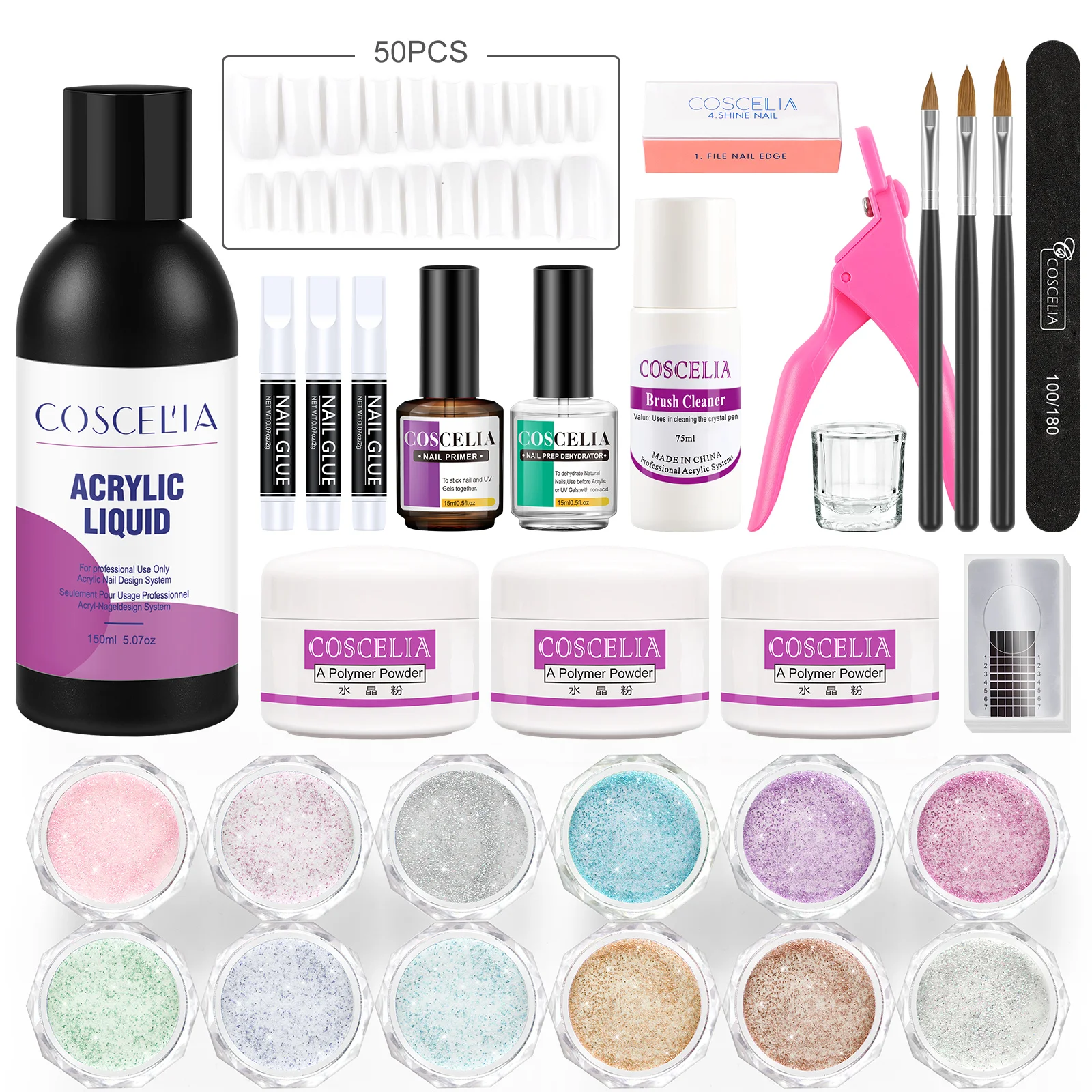 1*150 мл Акриловая жидкость 1*8 г прозрачная акриловая пудра 1*8 г розовый акриловый порошок 1*8 г белый акриловый порошок 1*3 шт акриловая ручка 1*15 мл осушитель для ногтей 1*15 мл грунтовка 1*75 мл Щетка Очиститель 1 * стеклянная чашка 1*50 шт белые накладные ногти 1*3 шт 2g клей для ногтей 1*20 шт Серебряный цвет формы для ногтей 1 * машинка для стрижки ногтей 1 * буферный блок 1 * Тонкая пилка для ногтей 1*12 шт./компл. Блестящий Порошок для ногтей