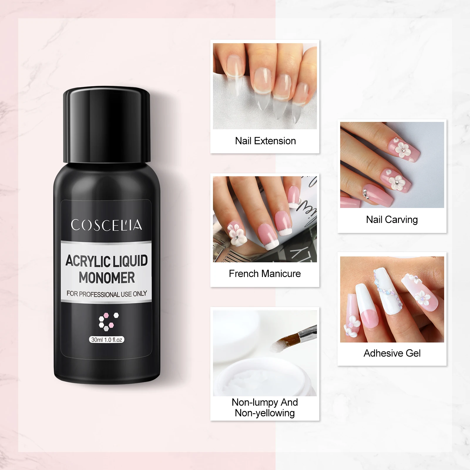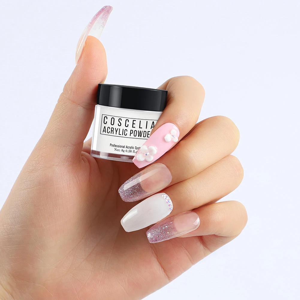 Характеристика: Для создания защитного слоя, укрепляйте собственные натуральные ногти, увеличивайте длину и прочность ногтей, которые не раскалываются и не шелушиваются. Может использоваться на натуральных ногтях и накладных ногтях. Обеспечивает фантастический естественный вид ваших ногтей. Идеально подходит для домашнего использования или профессионального использования. Спецификация: Бренд: COSCELIA Емкость: 8 г/бутылка Цвет: прозрачный/белый/розовый Этапы наращивания ногтей: 1. Нанесите форму ногтя на ваш ноготь. 2. Нанесите акриловый порошок на гвоздь акриловой жидкостью. 3. Попробуйте в течение 1-2 минут. 4. Снимите форму ногтя. 5. Форма ваших ногтей. DIY дизайн цветы шаги: 1. Почистите акриловую мощность на ногтевой форме акриловой жидкостью. 2. Приклейте его к реальному ногтю и убедитесь, что он полностью растягивается, подождите, пока он высохнет. 3. Удалите форму для ногтей. 4. Форма ваших ногтей. 5. Нанесите цветное пальто. 6. Сделайте форму акрилового порошка, как вы хотите с акриловой жидкостью.