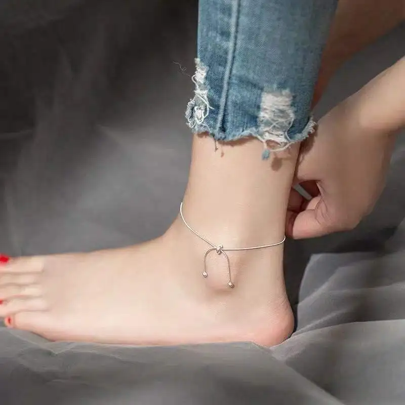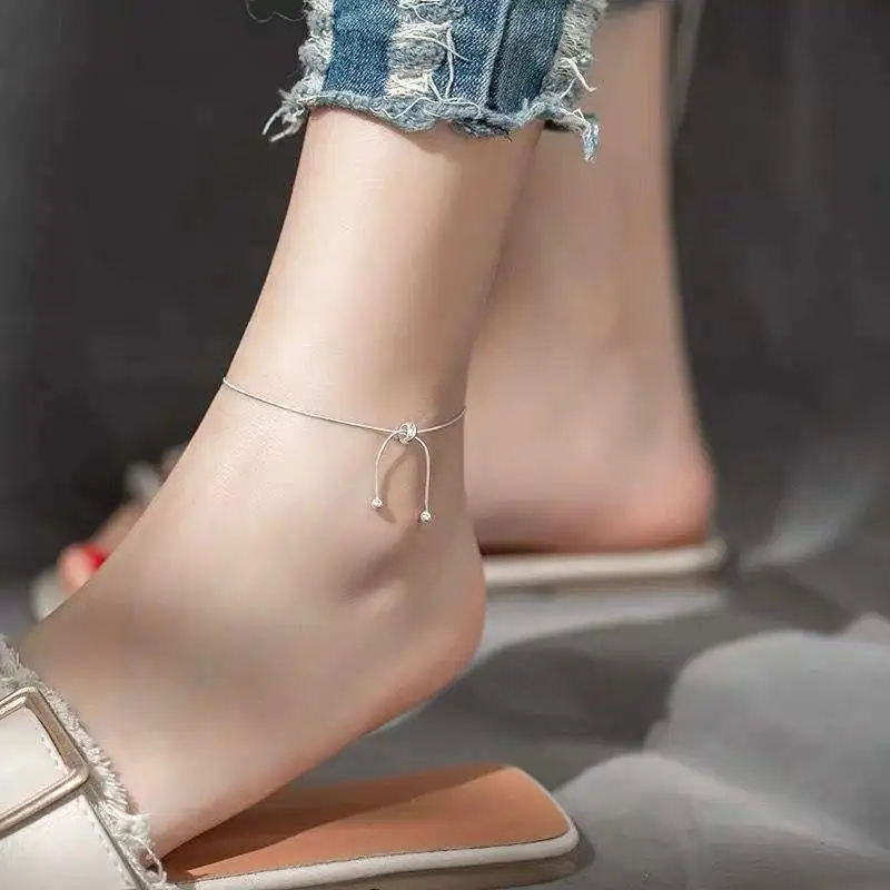 Женский ножной браслет из стерлингового серебра 925 пробы, регулируемый бант-цепочка с узлом, Изящные Ювелирные изделия, милые аксессуары в подарок