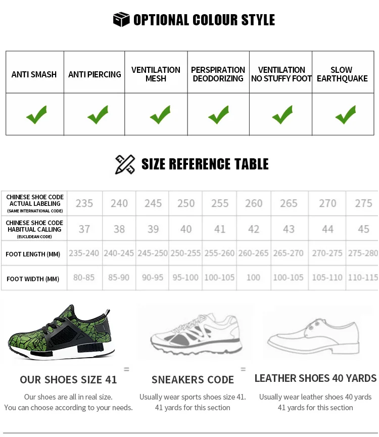 Безопасная обувь, продаваемая в этом магазине, имеет стандартный размер. Если вы будете следовать инструкциям, вы не будете покупать обувь неправильного размера!