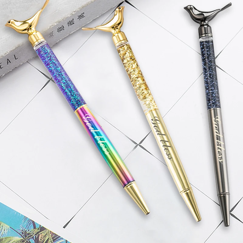 1 шт. дизайном Птица, с украшением в виде кристаллов шариковые ручки с подгонянным логосом инструмент для написания золото Фольга гелевая ручка канцелярские принадлежности класса люкс фестиваль подарки надписи