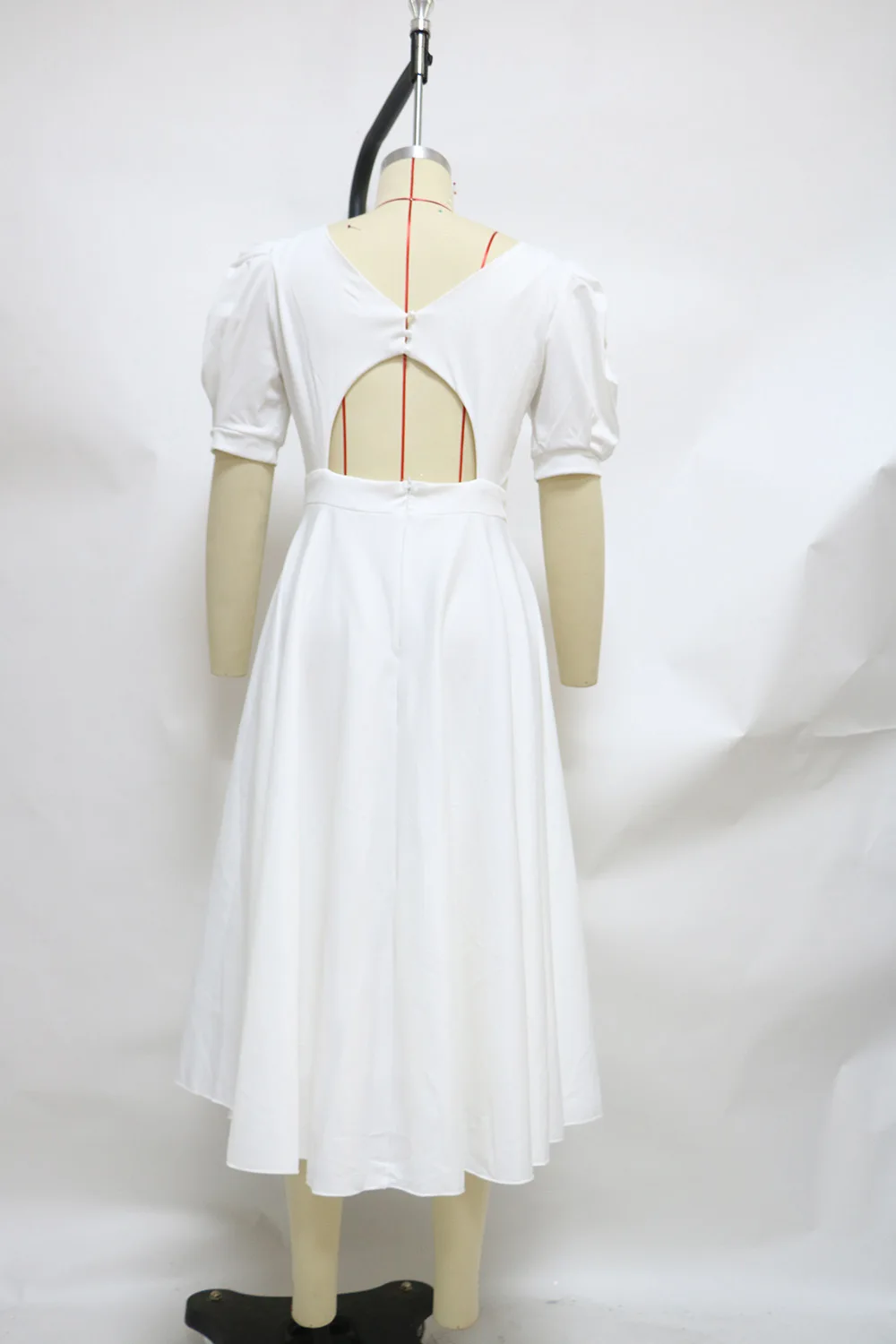 Летние платья-миди 2021, повседневное Белое Женское платье с круглы...
