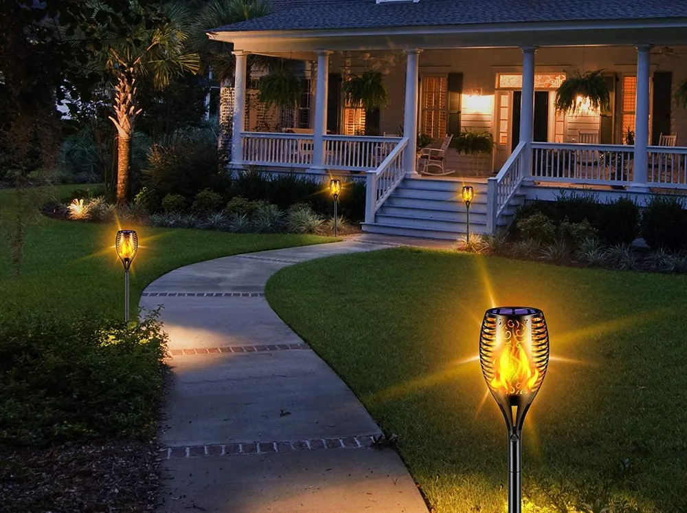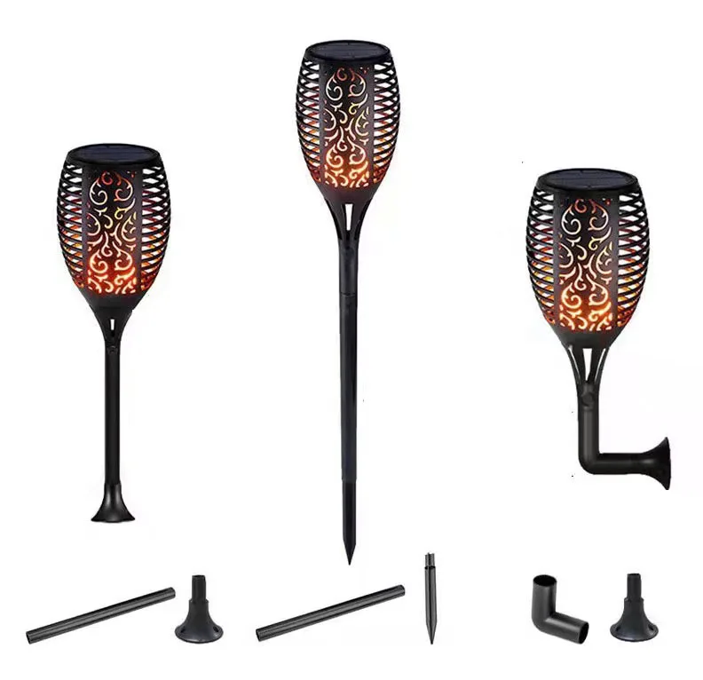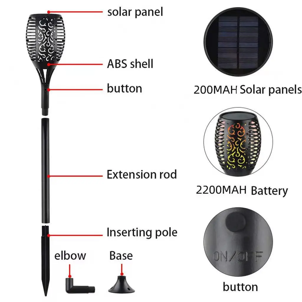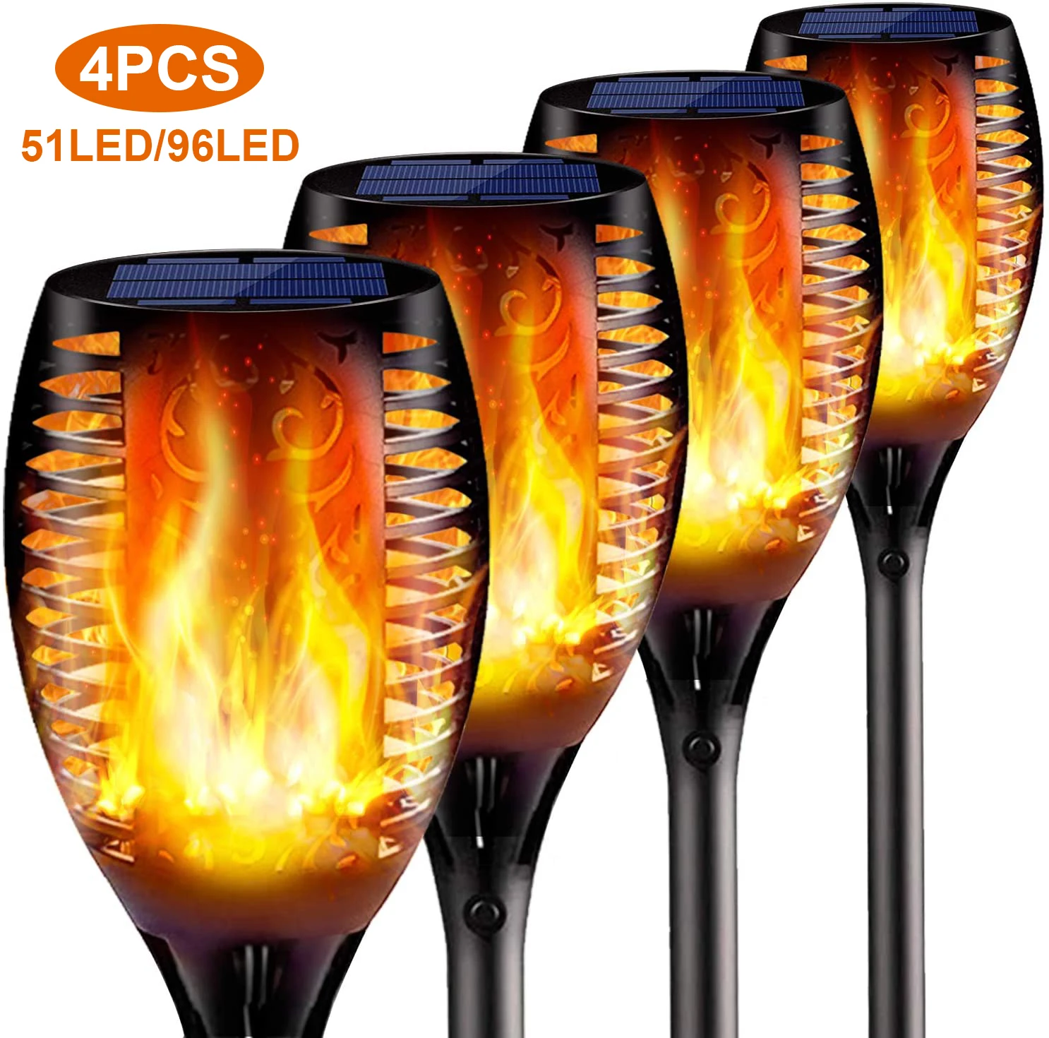 Наружный светодиодный фонарик на солнечной батарее с мерцающим пламенем, водонепроницаемый садовый декоративный ландшафтный светильник для газона, уличсветильник ффонарь для дорожек, 96 светодиодов