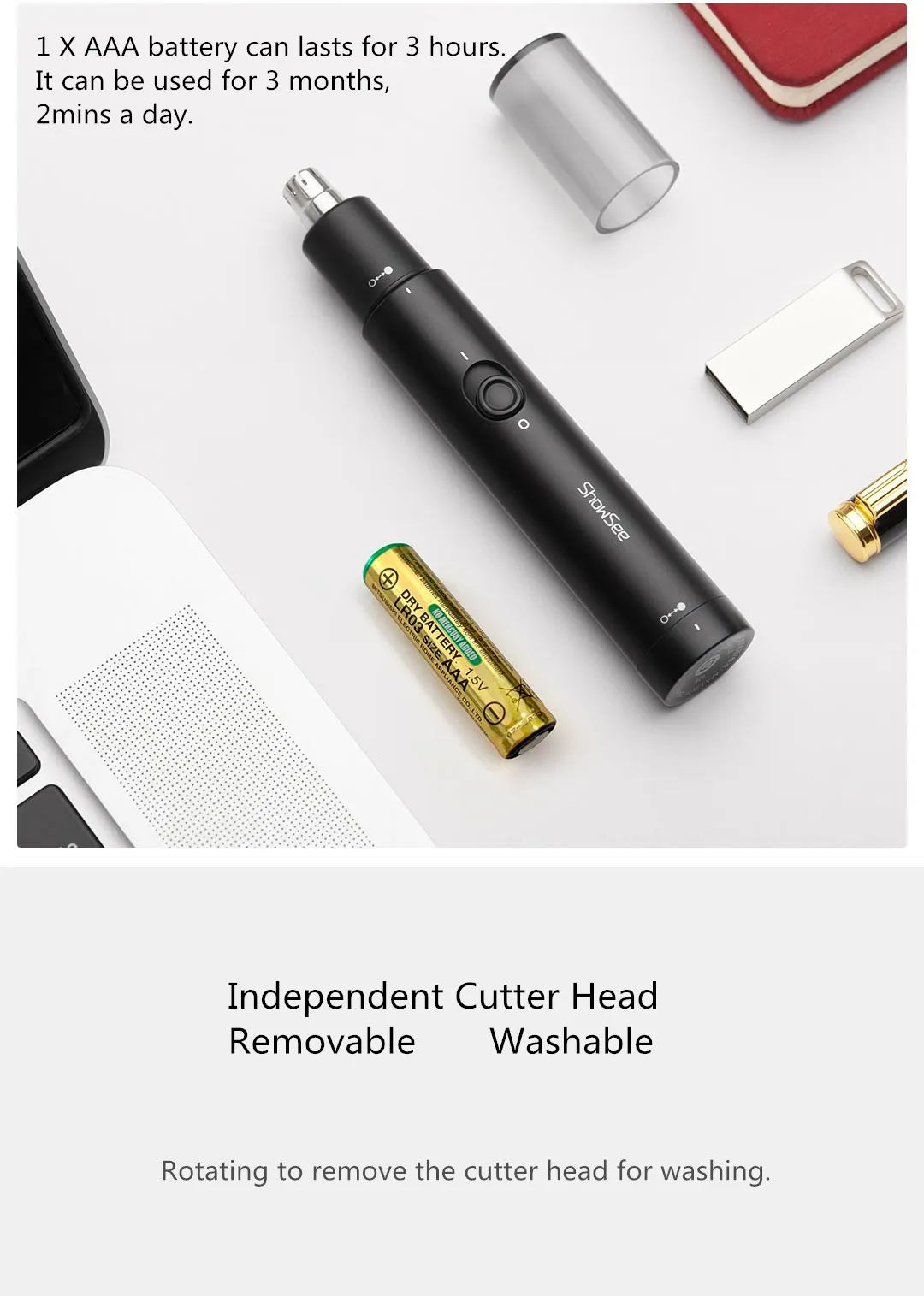 Электрический мини-триммер для волос в носу Xiaomi Showsee, съемная...