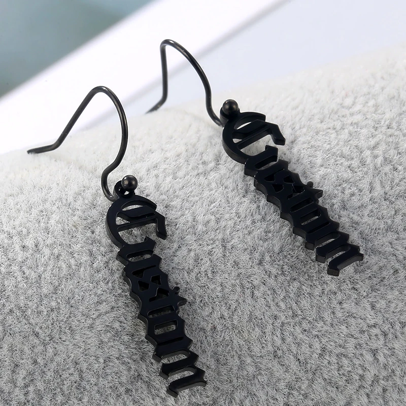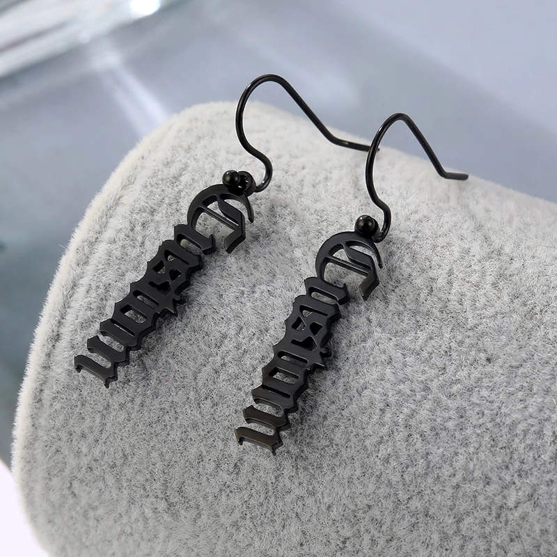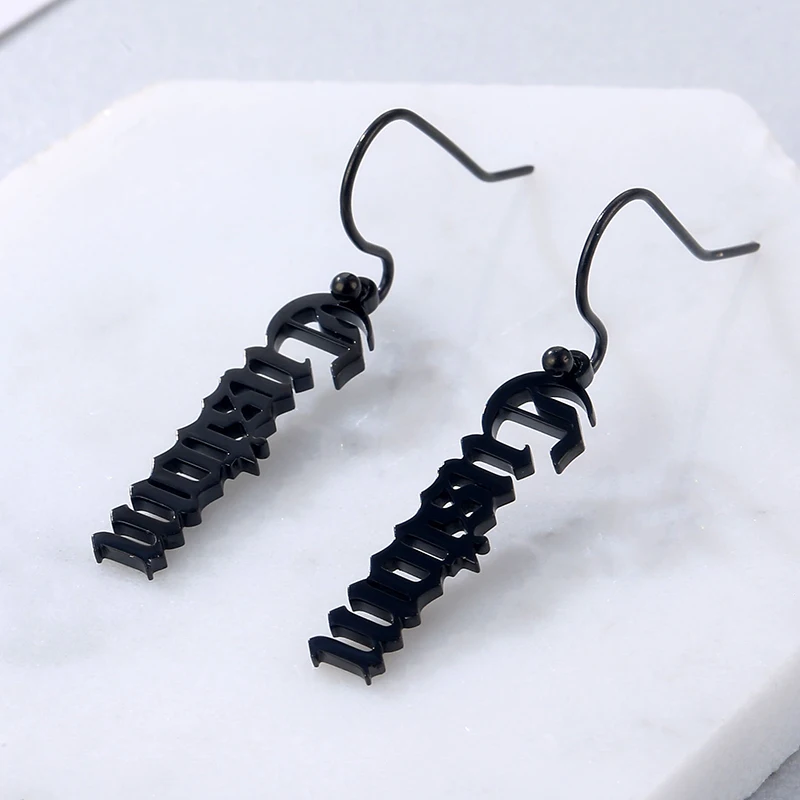 Персонализированные именные серьги из нержавеющей стали на заказ для женщин, черная именная табличка на заказ, подвесные вертикальные серьги, ювелирные изделия, подарки
