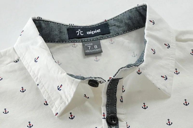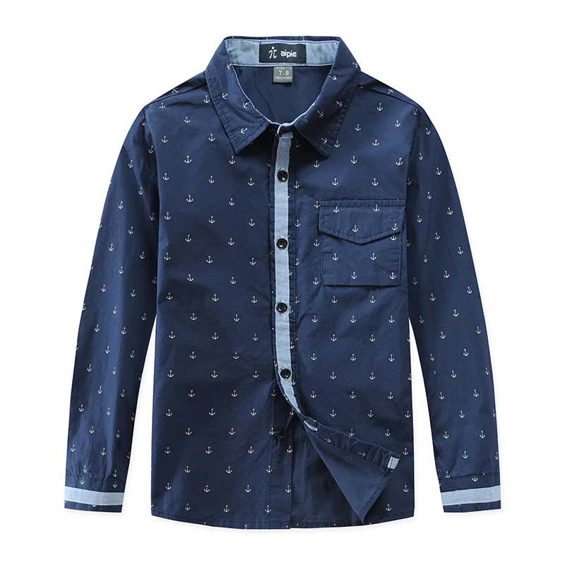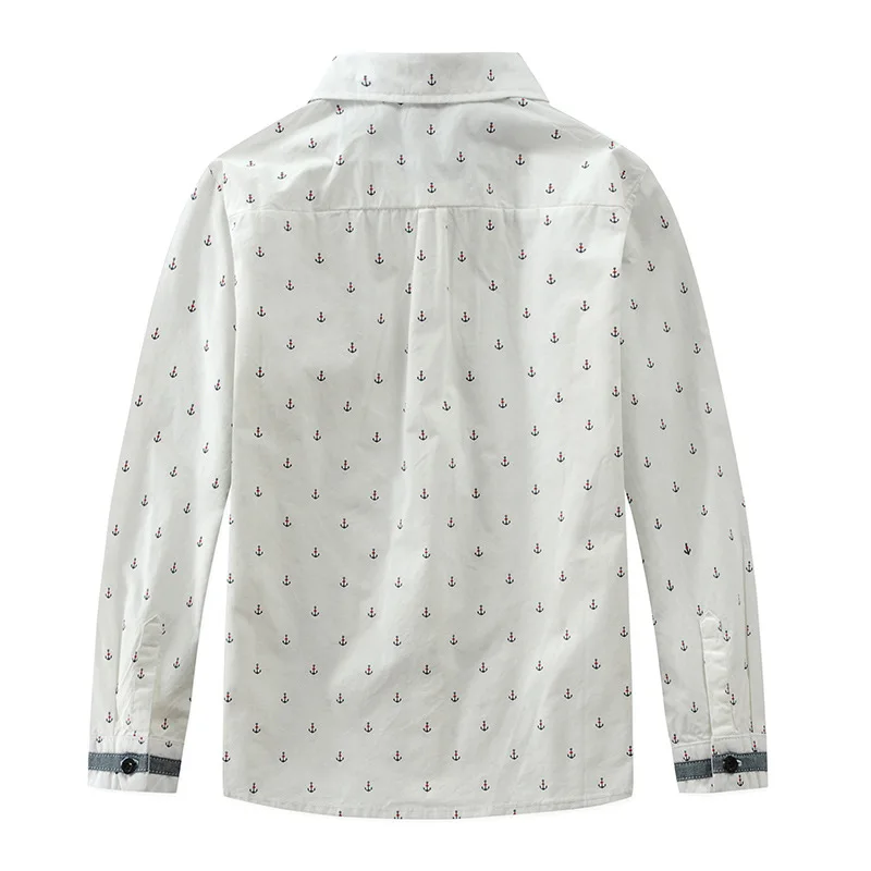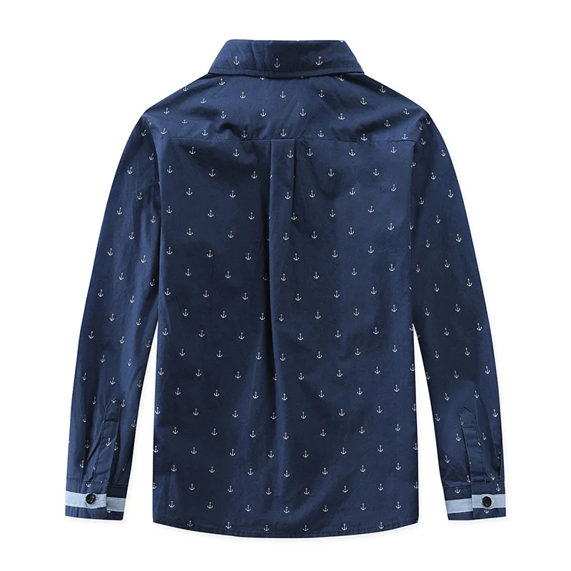 Рубашка хлопковая для мальчиков, с принтом якоря и длинными рукавами, 100%, От 3 до 11 лет