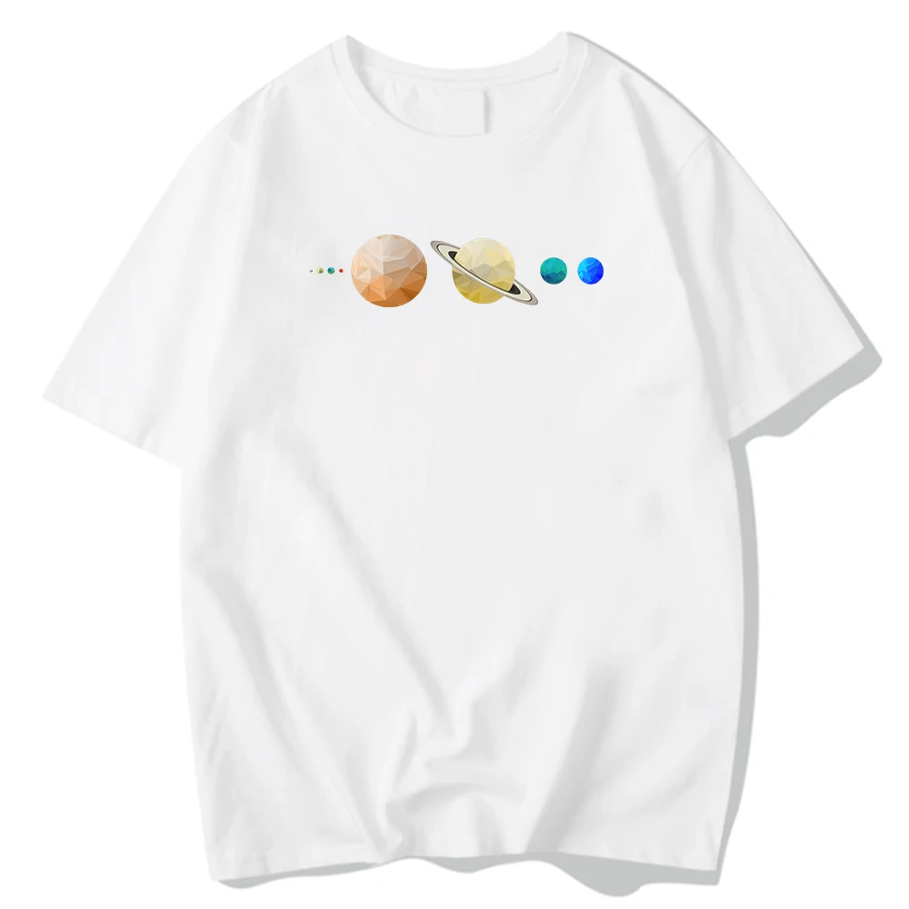 Футболка мужская с круглым вырезом, Модная приталенная рубашка с принтом планеты сбоку за сбоку, с круглым вырезом, для путешествий