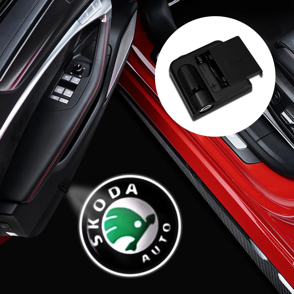 2 шт./компл., Автомобильный светодиодный дверной светильник, лазерный прожектор с привидением, логотип, светильник для Skoda Octavia 2 3 Kodiaq, автомобильные аксессуары, внешний вид автомобиля
