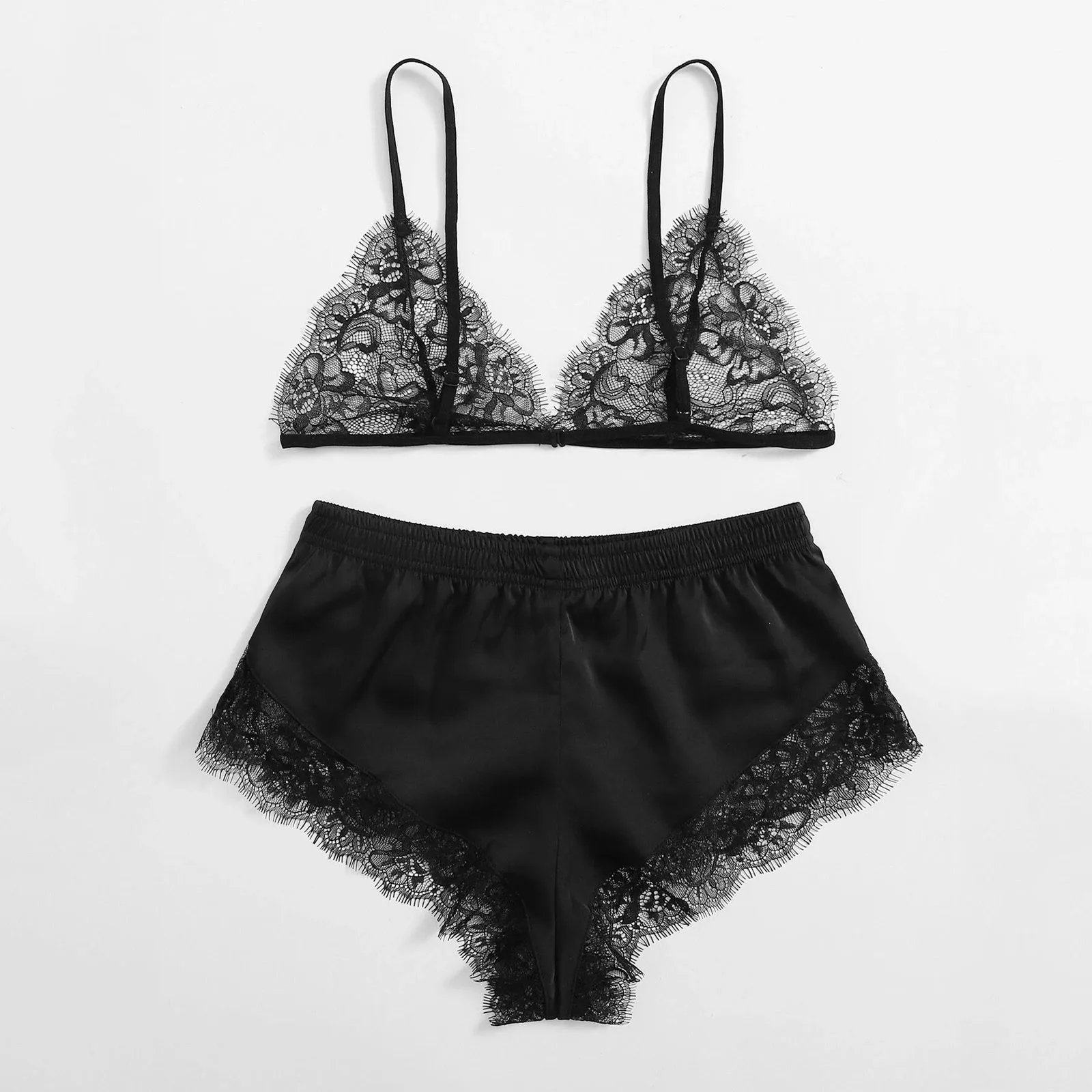 Женский модный сексуальный комплект нижнего белья с кружевными полыми изысканными бюстгальтерами и шортами