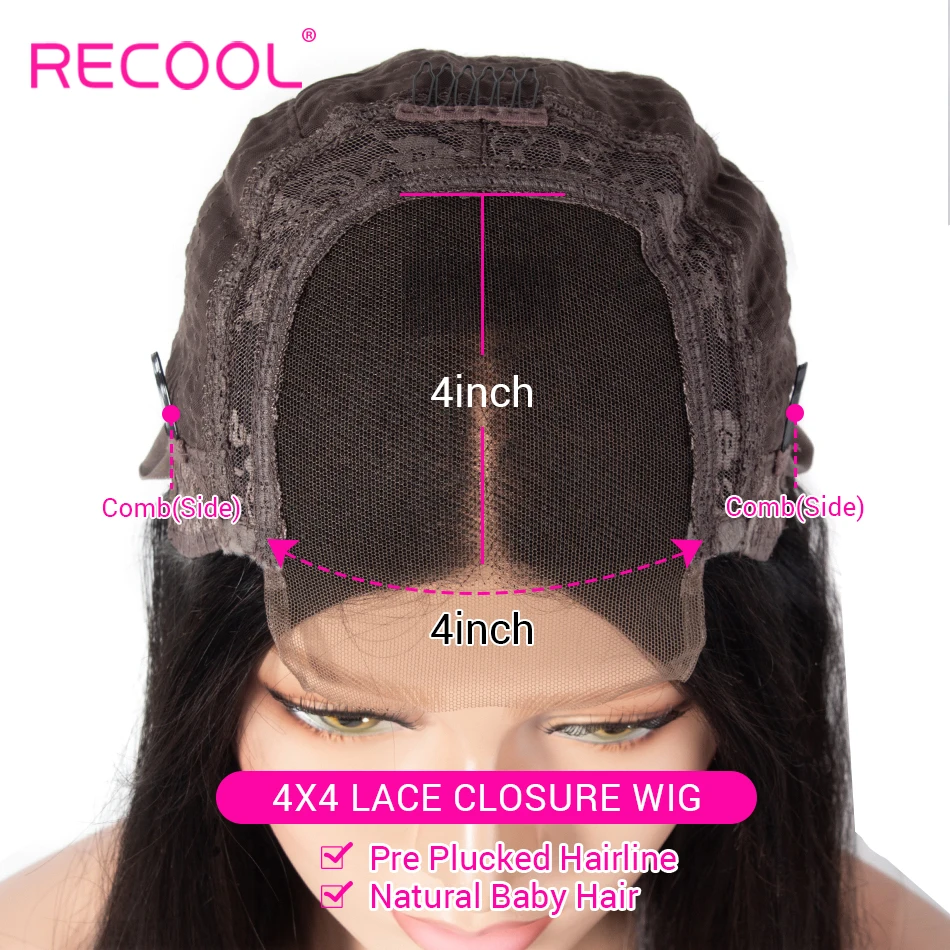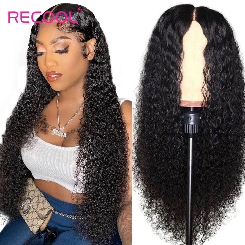 Монгольский кудрявый парик Recool 4x4, парик из человеческих волос с кружевной застежкой, 200% кудрявый парик с детскими волосами для женщин