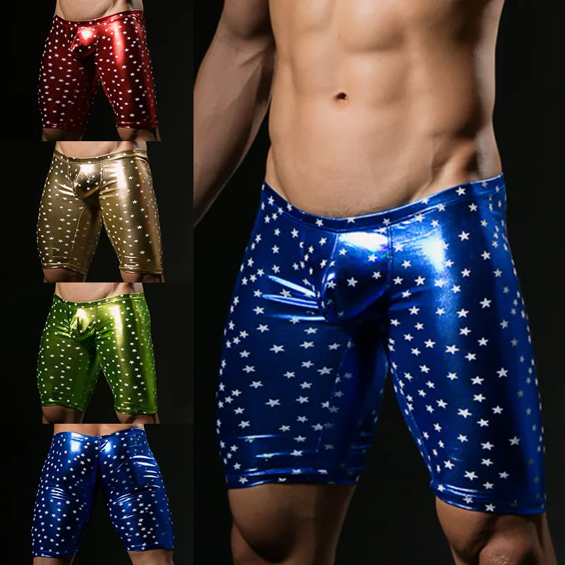 Мужские сексуальные шорты из полиэстера, Повседневная модная кожаная забавная Пижама со звездами, короткие леггинсы
