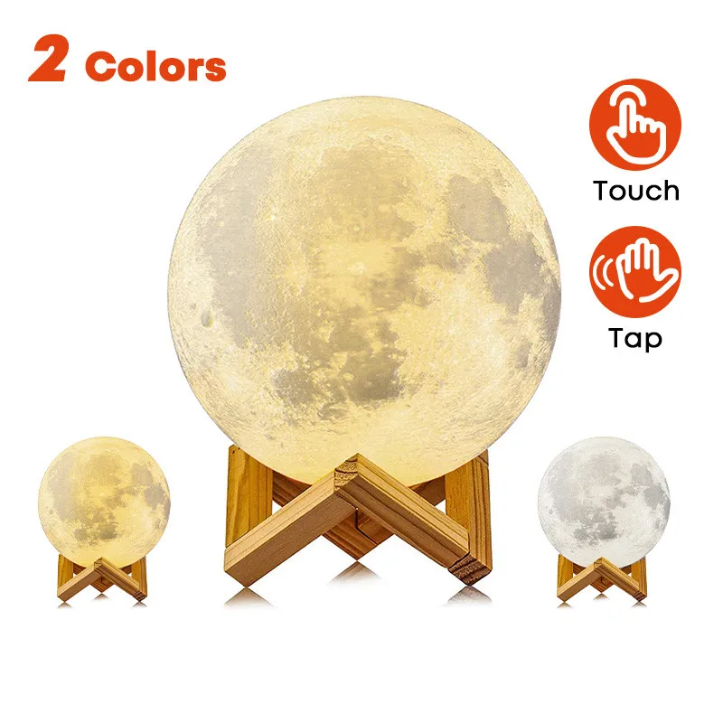 Светодиодный ночник с 3D принтом, креативный Настольный светильник в виде Луны с перезаряжаемым сенсорным выключателем, Потолочная люстра, светильник освещение, s-Декор