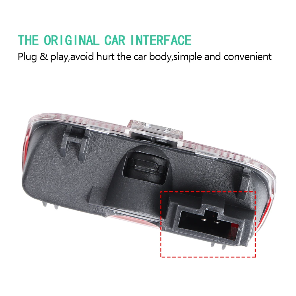 Особенности: Наименование товара: дверной светильник Напряжение: 12 В Мощность: 5 Вт Материал: ПК + светодиодный Тип светодиодный: для чипа cree Посылка включает в себя: 2 шт. * дверной светильник Подходящие модели: Для Skoda Superb 2009-2018