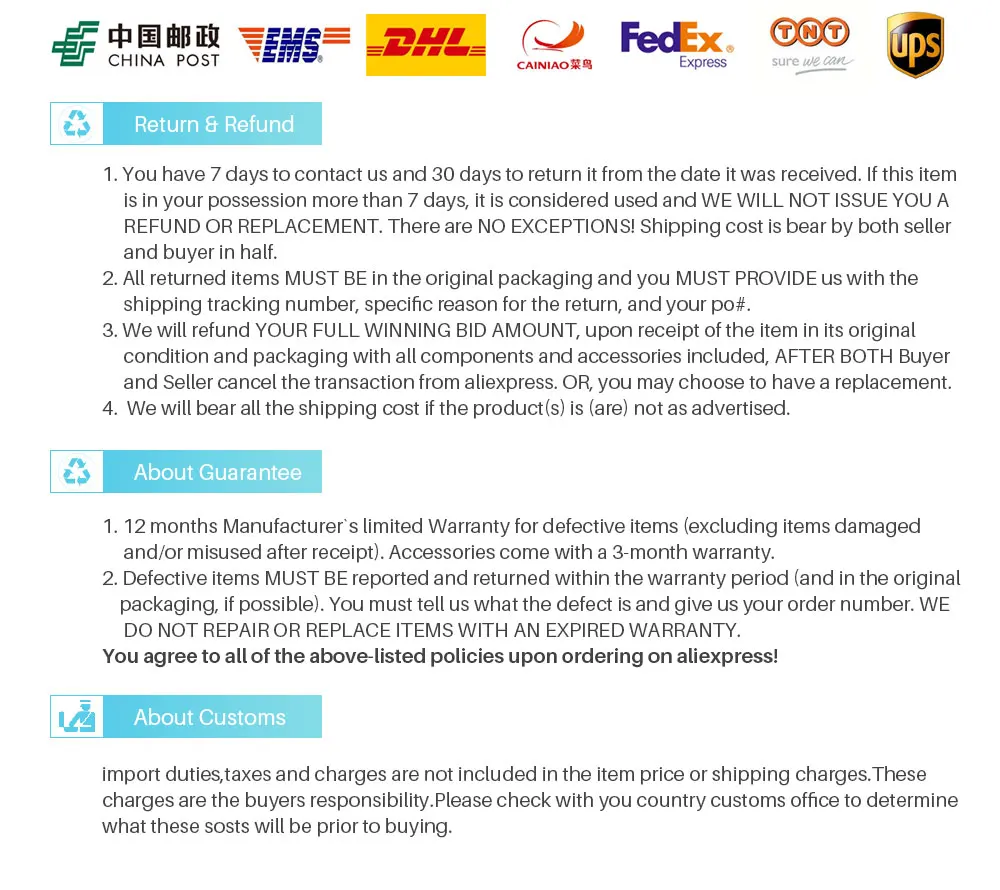 Tego zakupu nie mogę ocenić, gdyż przesyłka nie dotarła z winy przewoźnika, według śledzenia przesyłki nie wyjechała z Chin. Zwrot pieniędzy nastąpił sprawnie. Sprzedawcę polecam, gdyż inne zamówienia były zrealizowane bez problemu.